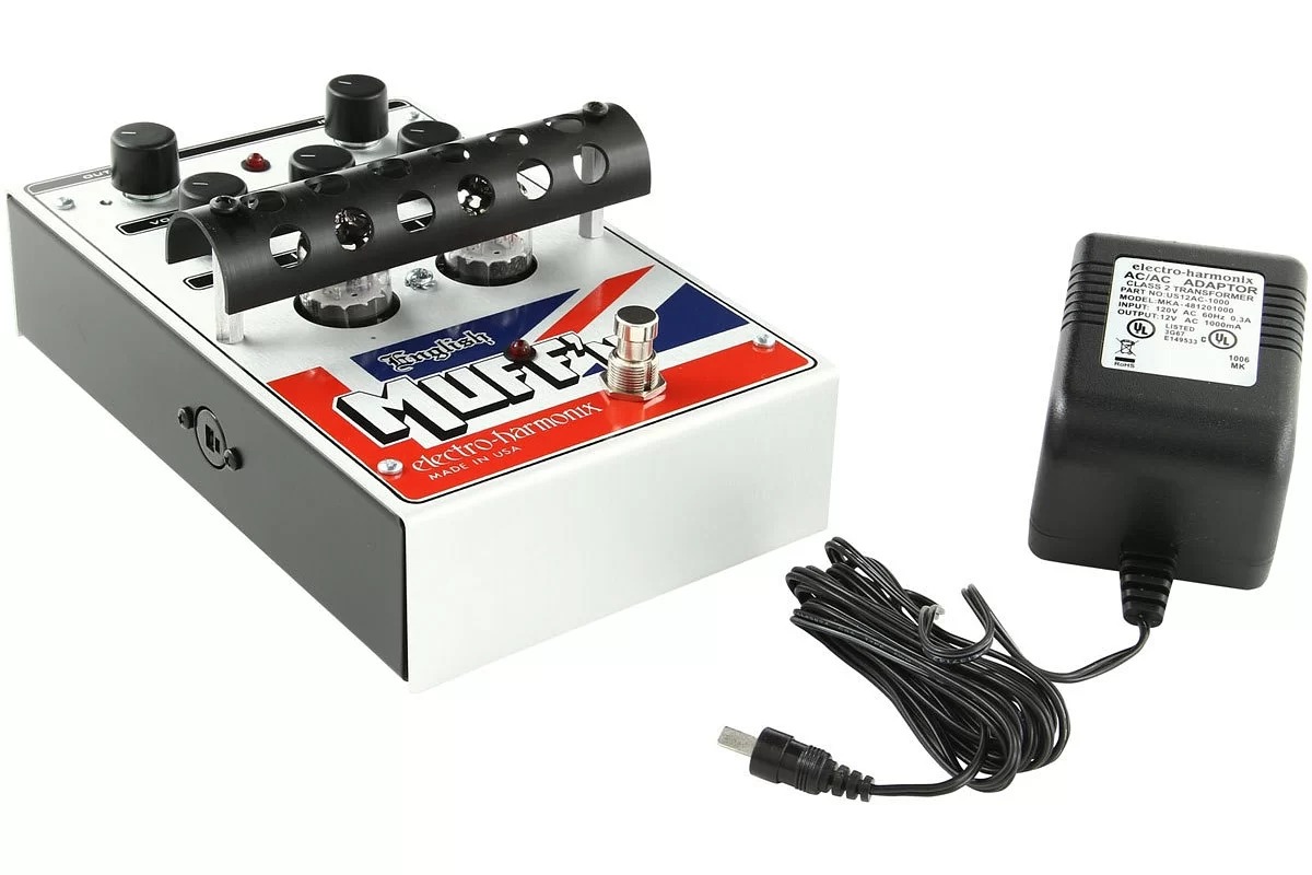 EHX English Muff'n – ламповый дисторшн/преамп. В случае с этой педалью слово "ламповый" не просто украшение. Здесь действительно есть лампы и они работают!
