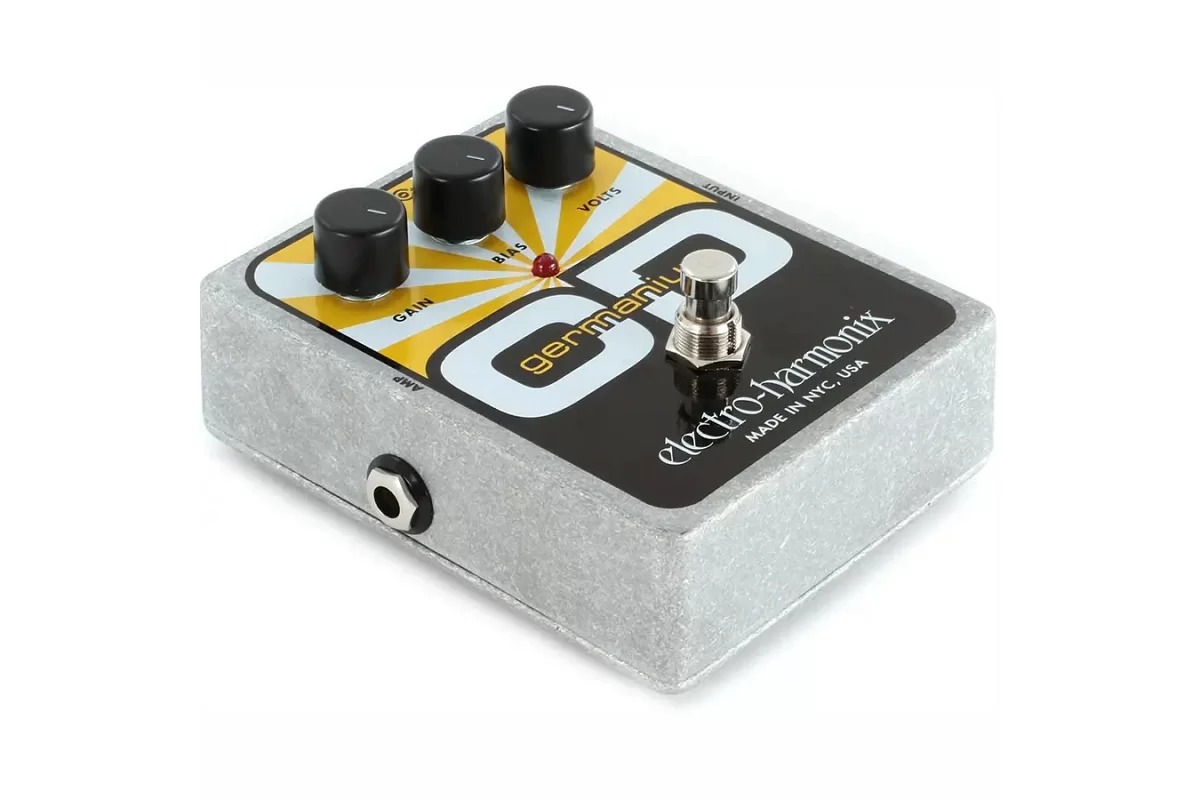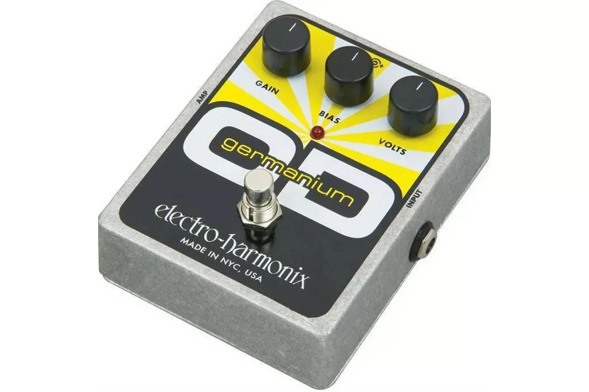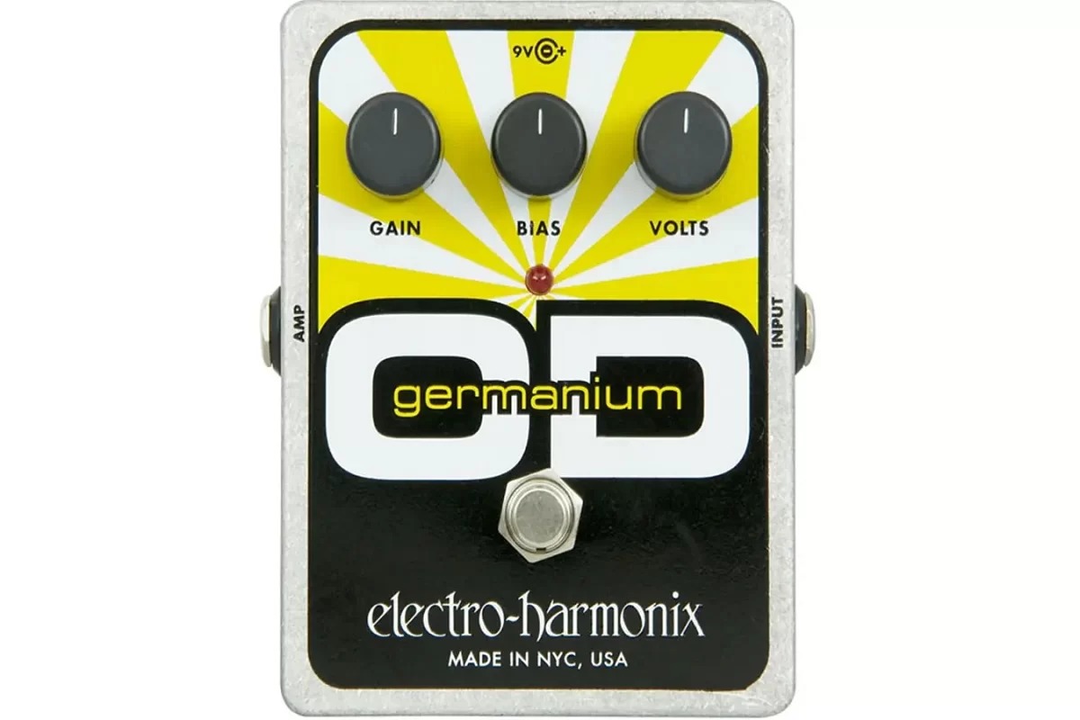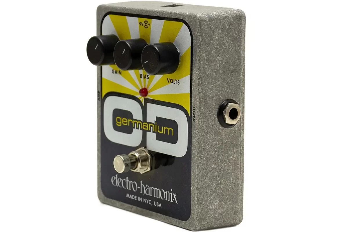 Electro-Harmonix Germanium OD – это классическая схема перегрузки 60-х годов, сделанной на основе германиевых транзисторов. Эта педаль призвана решить проблему, заключающуюся в том, что подсевшая батарея дает звук, к которому стремятся многие гитаристы, но радость эта длится недолго, поскольку батарея вскоре умирает. С Germanium OD такой проблемы не будет, ручка Voltas позволит регулировать напряжение, подаваемое батареей до 3 вольт и создавать таким образом желаемый звук. Плюс на панели педали есть ручка Gain, контролирующая усиление, и ручка Bias, управляющая временем атаки. Bias и Voltas, если совмещать их вместе, способны дать действительно впечатляющие результаты.