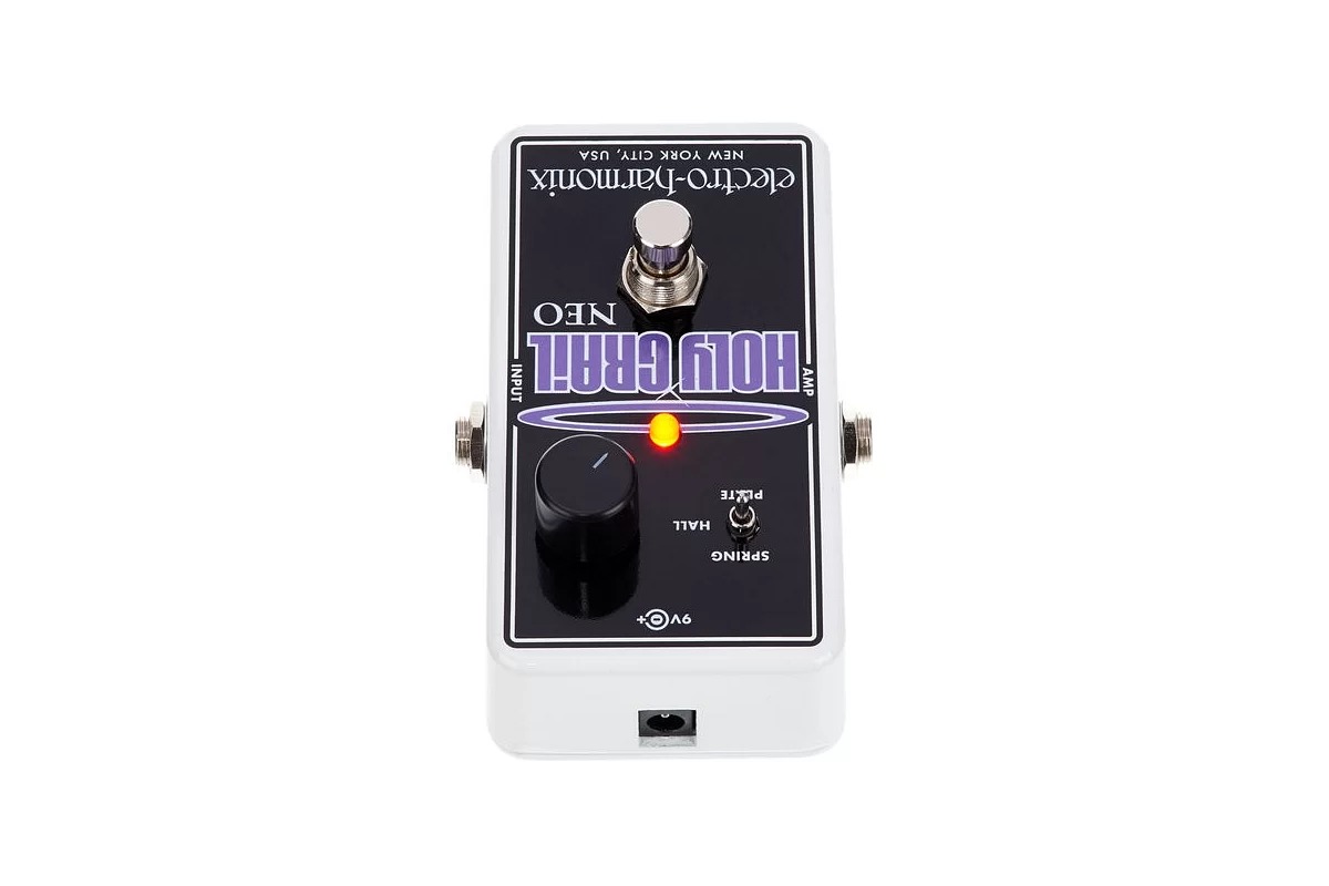 Обновлена версия всеми любимого ревера от Electro-Harmonix – Holy Grail Neo . Новинка заимствует у предшественника шикарно звучащие режимы Spring (пружинная реверберация) и Hall (имитирует благородное отражение большого помещения), а также добавляет листовую реверберацию (Plate), известную своими характерными блестящими и яркими отражениями. Схема помещена в компактный стомпбокс и не утруждает пользователя лишними параметрами. В вашем распоряжении одна-единственная крутила Reverb, отвечающая за подмешивание эффекта в сигнал, и переключатель режима реверберации.