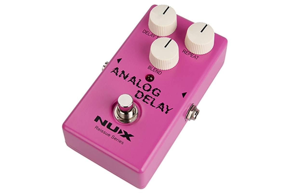 Гитарная педаль NUX Reissue Analog Delay является модернизированным бюджетным клоном легендарного винтажного аналогового дилея Ibanez AD-9, который производился с 1982 по 1984 год, сохранивший все те же привычные три регулятора: Delay Time (скорость повторов эхо) и Repeat до B – микс, или баланс выходного и обработанного сигнала).