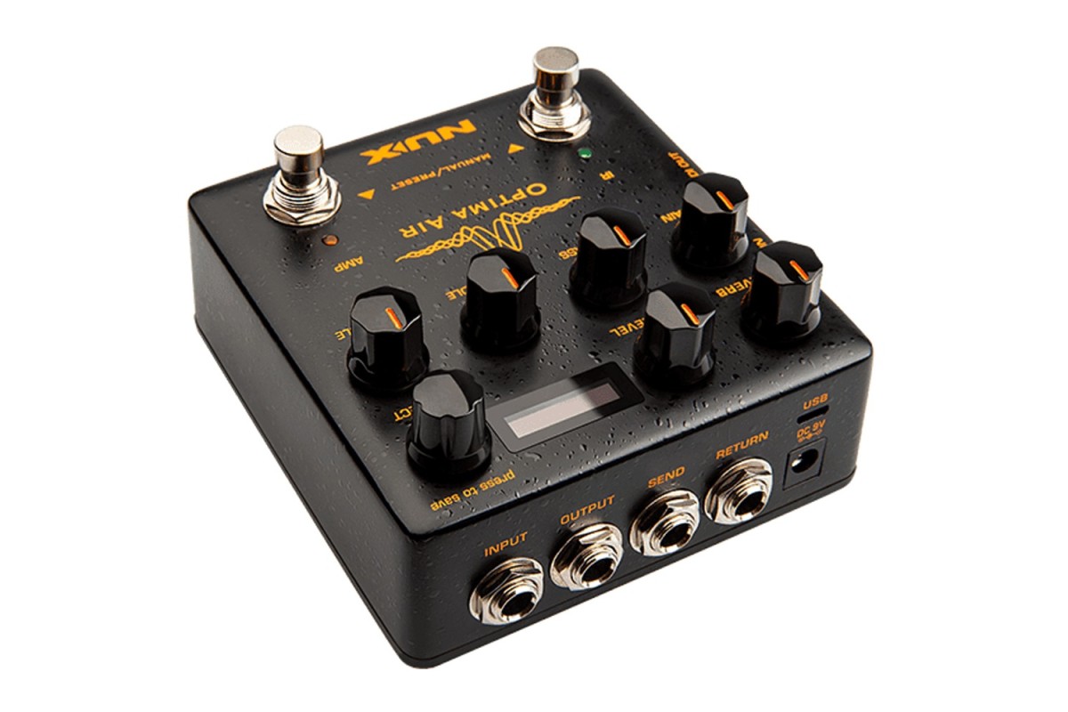 NUX Optima Air оснащен усилителем, позволяющим улучшить звук с помощью 3-полосного эквалайзера. Усилитель использует алгоритм NUX White Box (физическое моделирование) усилителя Neve 1073, который обеспечивает аналоговое качество звучания и предоставляет функции потоковой передачи через USB, реверберацию и захват IR.