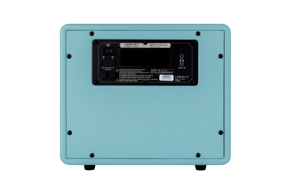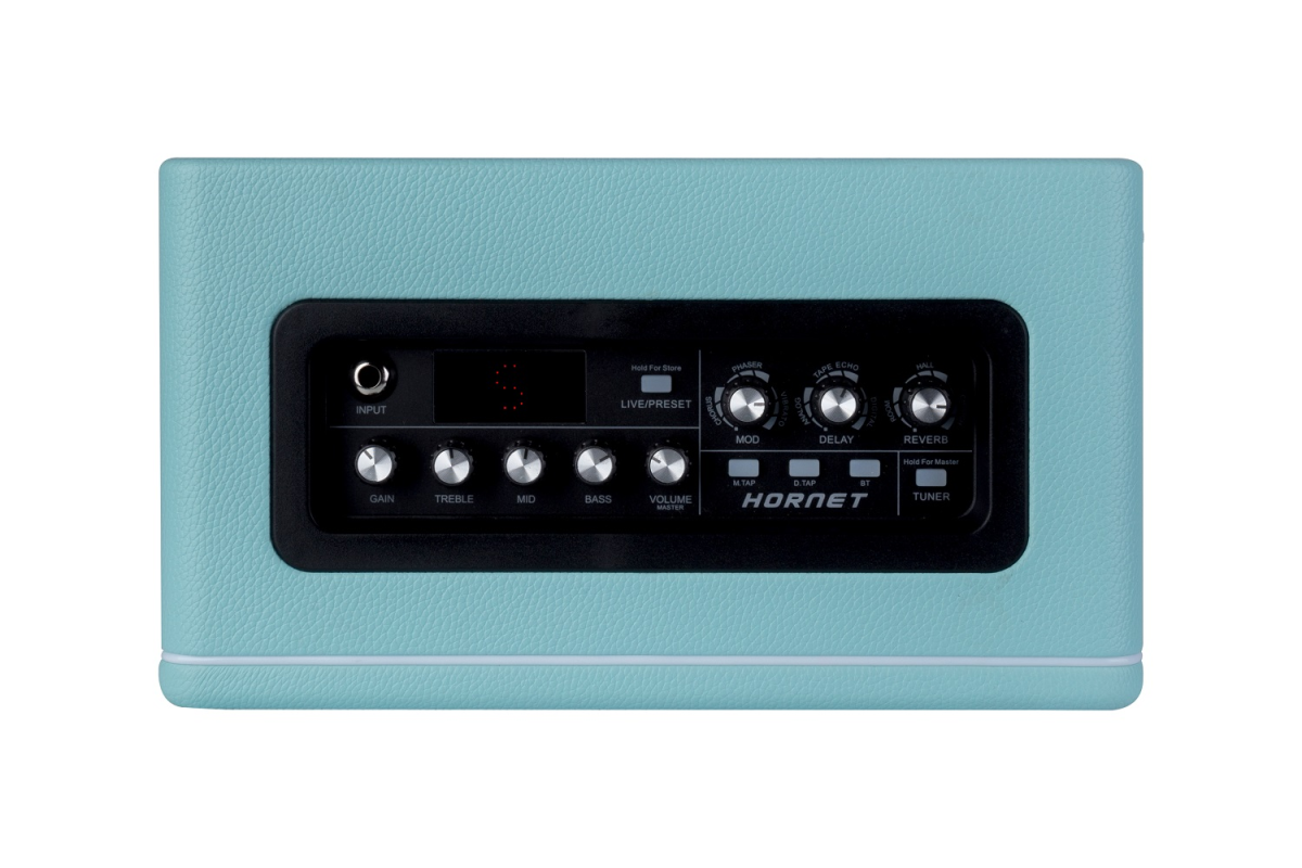 При общей функциональности и характеристиках между собой комбо серии Hornet отличаются списком цифровых моделей, что дополнительно подчеркивается цветом. Белый – полный спектр, включая бас и акустику. Черный для металлистов, а небесный Mooer Hornet DH05 ориентирован на блюз, блюз-рок и психоделию, предлагая как модели классических для жанра усилителей, так и специальные синтезаторные пресеты.