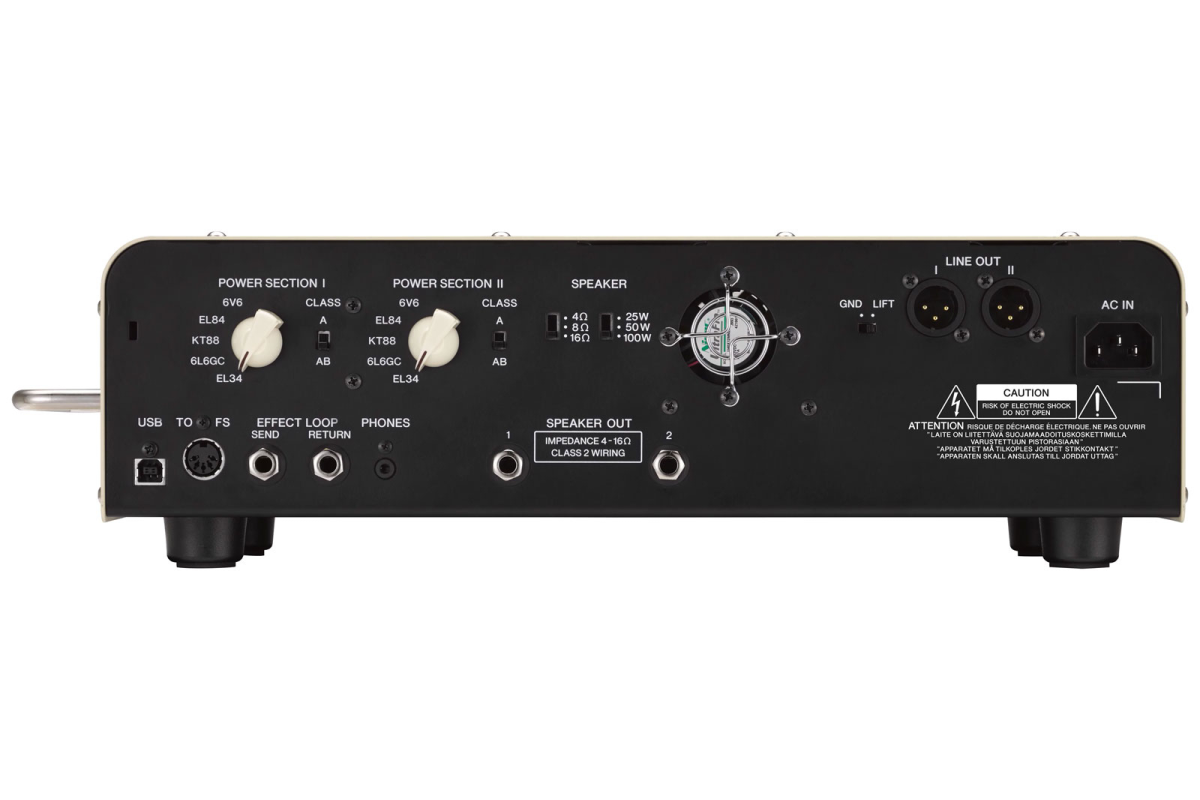 Управление : 2 x выбор модели усилителя, бустер, гейн, мастер, эквалайзер, ревербератор, громкость, класс, выбор ламп усилителя мощности