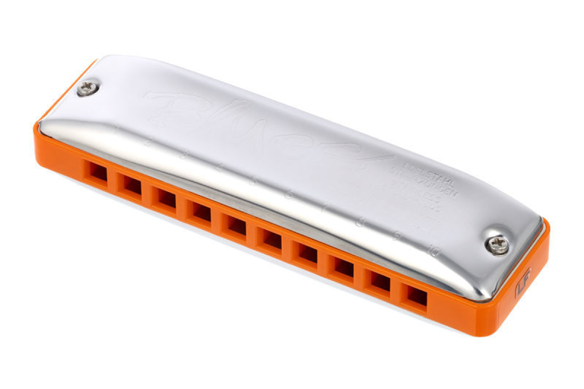 блюзовая гармоника с устойчивыми к коррозии язычками из нержавеющей стали, эргономичными крышками и пластиковым корпусом.