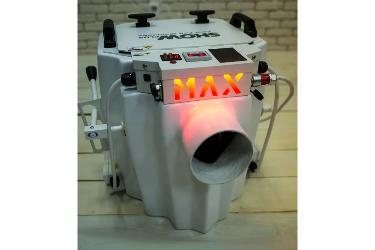 1. Высокая производительность и удобство в использовании благодаря легкому, эргономичному и надежному корпусу, в отличие от стальных традиционных машин тяжелого дыма. Также он значительно легче конкурентов 15 кг против 40-50 кг у железных аппаратов.