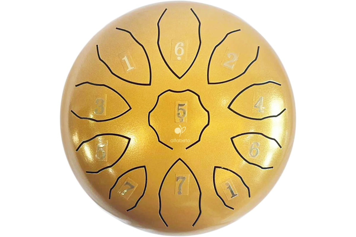 Глюкофон Alfabeto GLP8-11GL – это музыкальный инструмент с корпусом из азотированной нержавеющей стали, диаметром 8 дюймов и 11 тональных лепестков в тональности F Tonality . Каждый лепесток имеет собственный уникальный звук, позволяющий создавать мелодии с богатой гармонией и космическим звучанием.