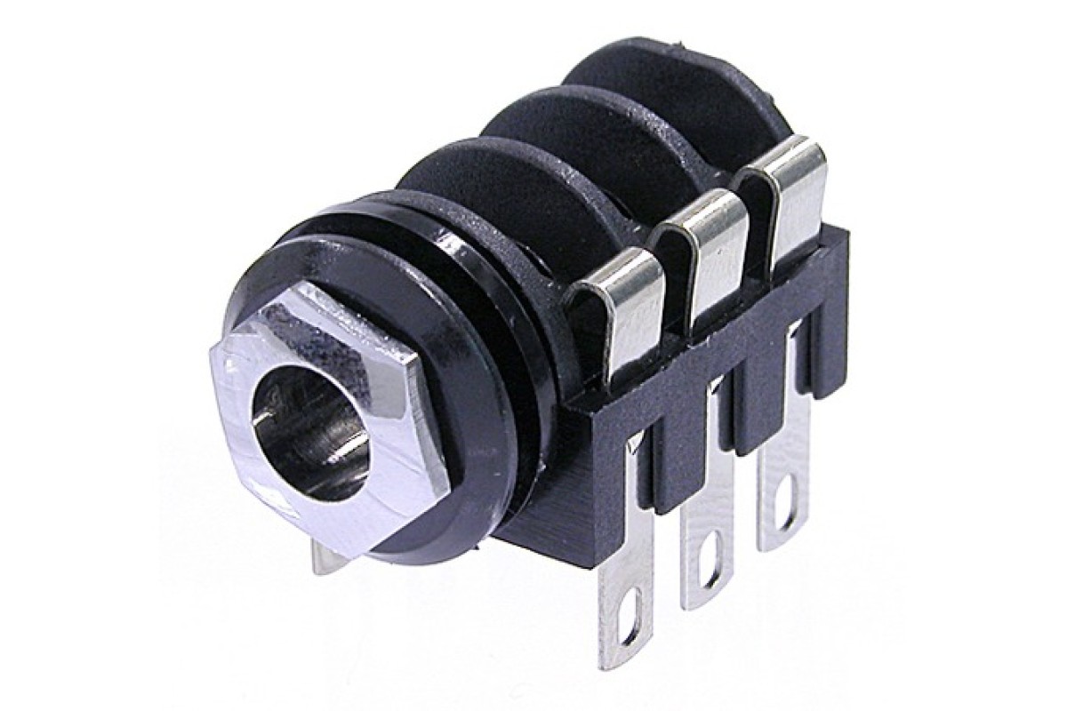 Разъем джек (гнездо) 1/4" стерео, горизонтальная установка на плату, хромированный