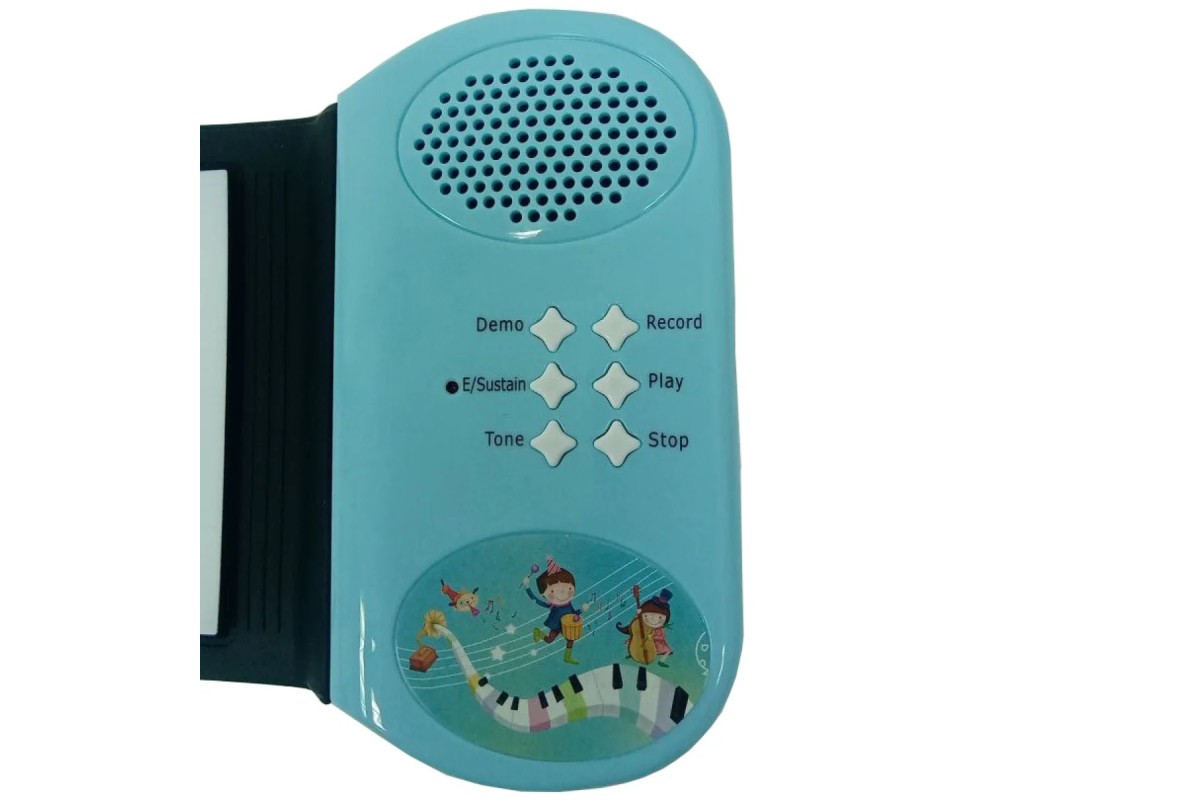 Одним из основных преимуществ этого компактного пианино есть то, что оно имеет разъем для наушников. Это функция, которой нет у большинства гибких пианино, хотя она очень полезна. Встроенный динамик отличает эту модель от других сворачивающихся пианино, потому что это избавляет от необходимости подключать инструмент к чему-либо еще. Также есть возможность подключения внешнего динамика для достижения лучшего и более громкого звучания. Пианино автоматически выключается, если не использовать его в течение 3 минут, что существенно экономит заряд батарей. Блок управления выполнен из прочного ABS пластика, а коврик изготовлен из прочного силиконового материала. Для питания используются 4 батарейки типа ААА. Пианино также может питаться от сети.