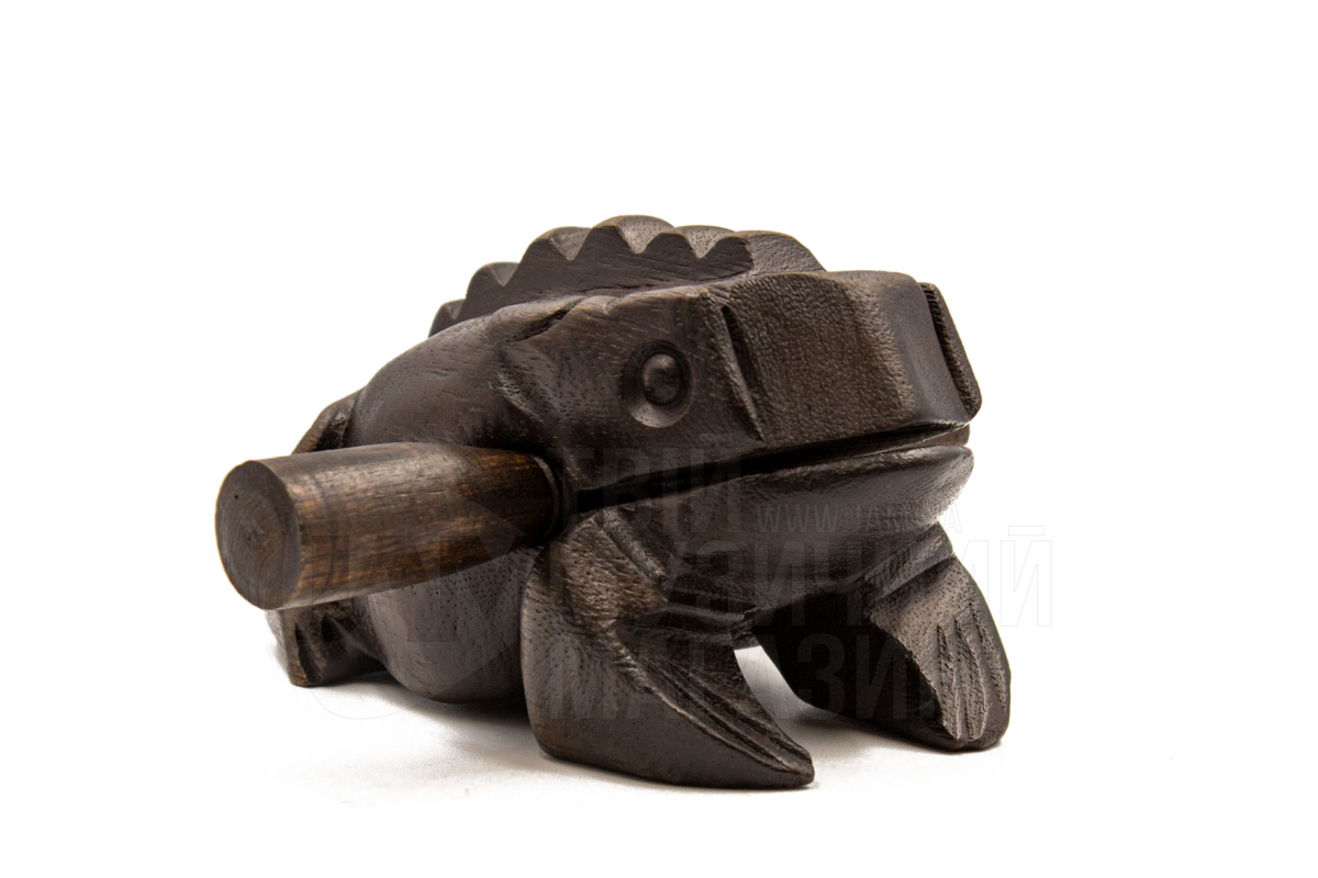 Форма лягушки с вырезанными бороздками на спине. При трении палочкой по этим бороздкам создаются характерные ритмические звуки
