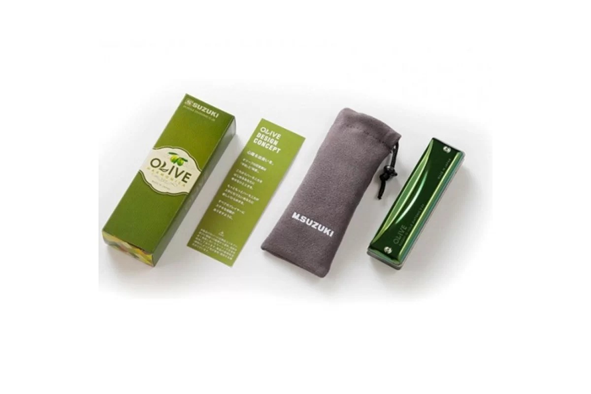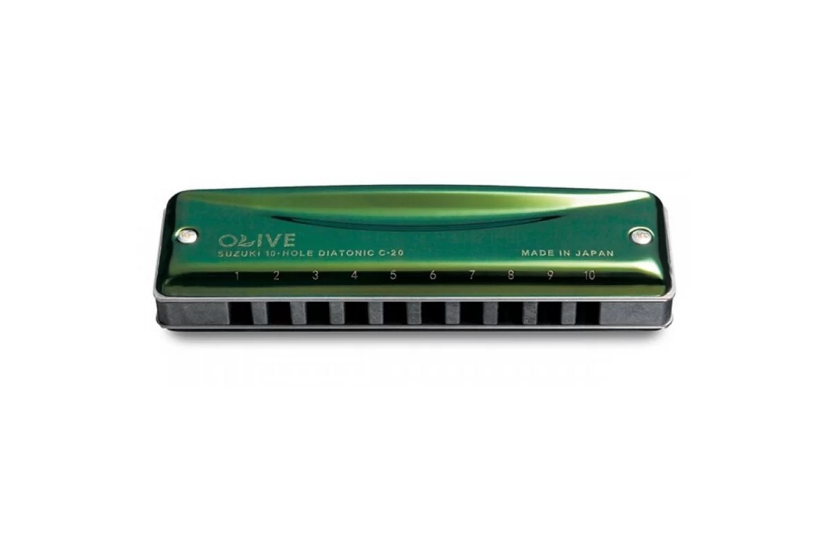 Suzuki C-20 G - Диатоническая губная гармошка, тональность G, 10 отверстий, стальные крышки, гребенки из композита твердого дерева, футляр в комплекте, оливковый цвет