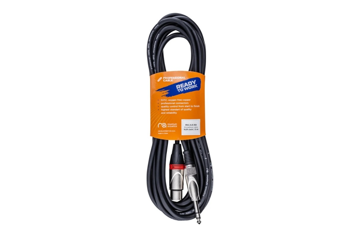 Maximum Acoustics MIC.XJ5 (Red) (OFC) – профессиональный микрофонный кабель от бренда Maximum Acoustics, изготовленный из 6 мм экранированного кабеля с использованием бескислородной меди (OFC) и оснащен коннекторами Jack Stereo 6,3 мм – XLR-female. Данная модель имеет длину кабеля 5 м. Цвет кабеля черный, а маркировочные кольца коннекторов – красные. Технические характеристики Maximum Acoustics MIC.XJ5 (Red) (OFC): Длина кабеля, м 5 Тип кабеля Микрофонный Разъемы Jack Stereo 6,3 мм - XLR-female Цвет кабеля Черный (кольца - красные)