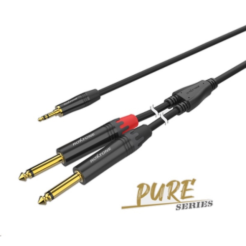 Межблочный кабель mini jack 3.5 мм стерео папа - 2 x Jack 6.3 моно папа Roxtone PACC280L2, 2 м