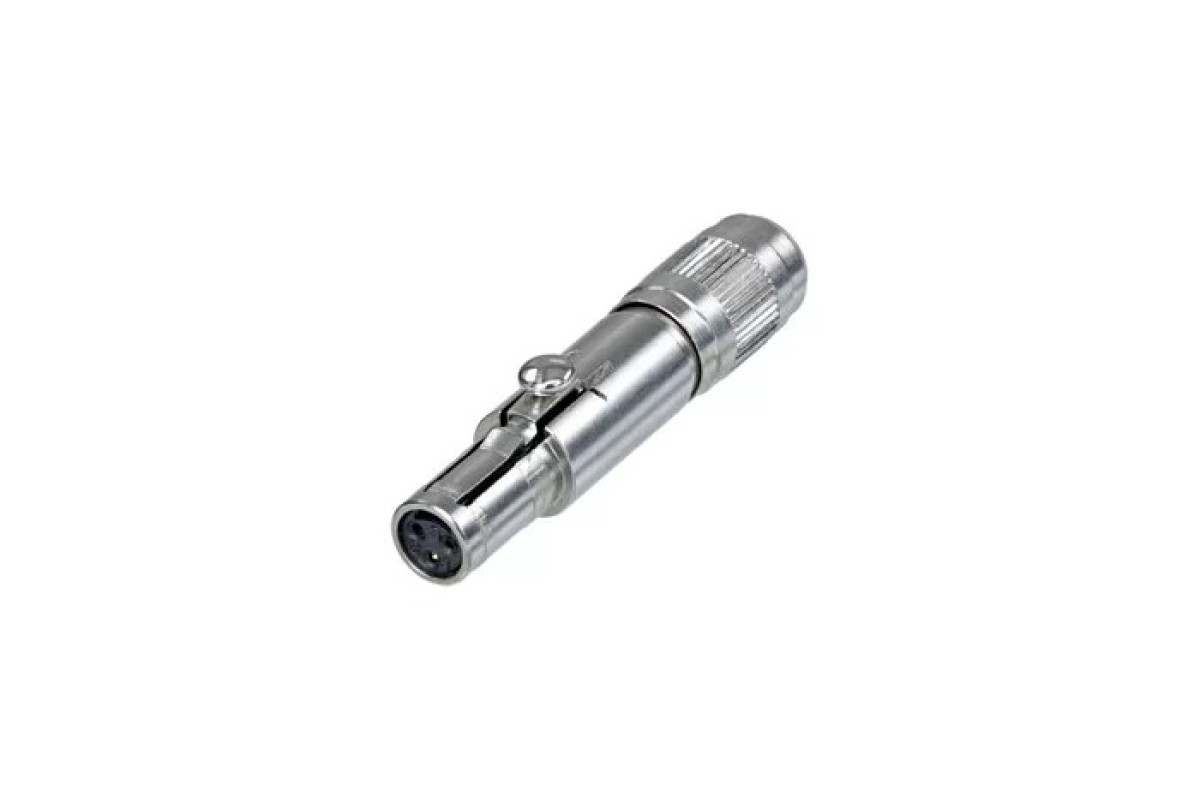 Кабельный разъем mini-XLR, 3-х контактный <гнездо/мама>, nanoCON-серия. Находит применение в медицинском оборудовании, системах управления, подходит для миниатюрных и беспроводных микрофонов и переносных микшеров. Компактный промышленный металлический никелированный корпус, блокирующее устройство, контакты - покрытие золото, под пайку, зажимной патрон, подходит для проводов сечением 0.2-0.14 мм2 (AWG 24-26), на кабель диаметром до 3.4 мм