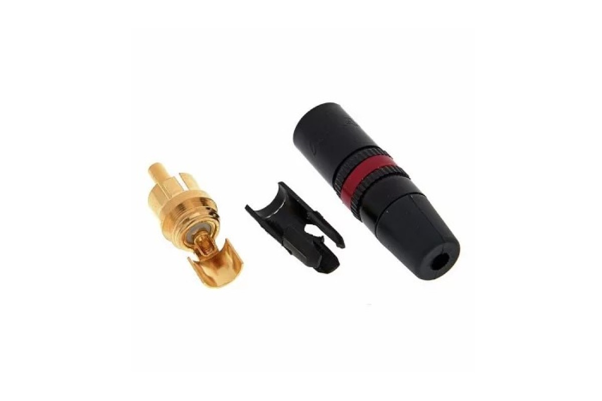 Разъем RCA в металлическом черном корпусе с черной маркировкой. Цельный центральный контакт с выводом для пайки. Позолоченные контакты. Для кабелей диаметром 3,5-6,1 мм.