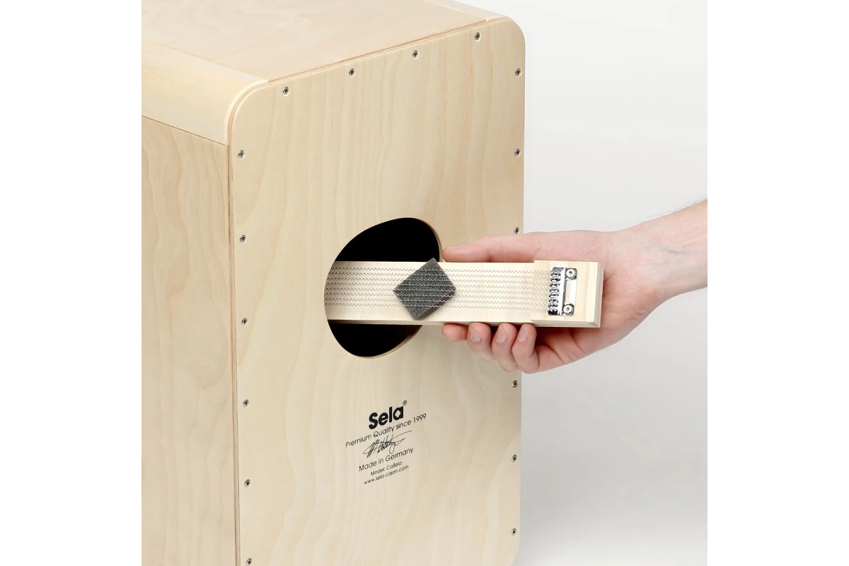 Звук струн кахона может быть ослаблен или усилен по вашему вкусу. Кроме того, вы можете легко снять блок со струнами. Благодаря этому ваш CaSela превращается в традиционный перуанский кахон без струн. Кахон имеет индивидуально регулируемые углы тапы, в дополнение к четкому звуку струн и дифференцированному басу.