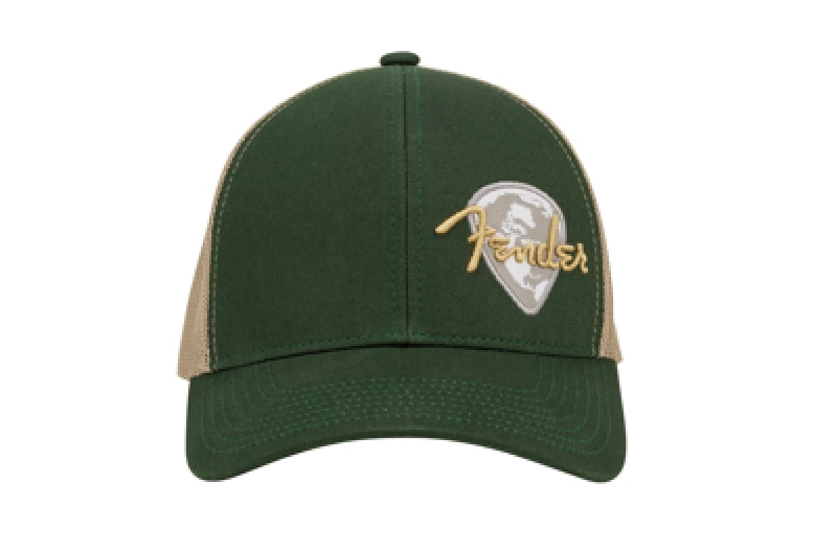 Fender Globe Pick Patch Hat Green Khaki – фирменная кепка из лого Fender, цвет – зеленый хаки.
