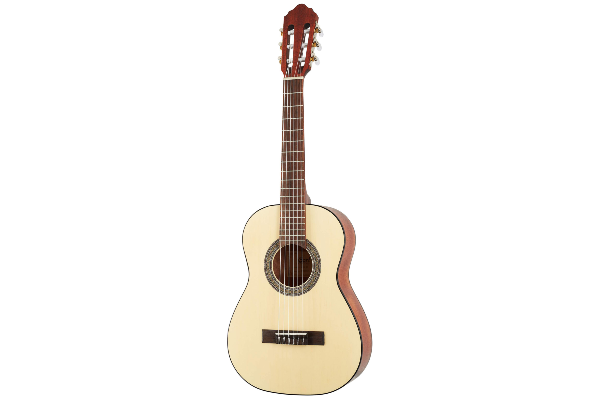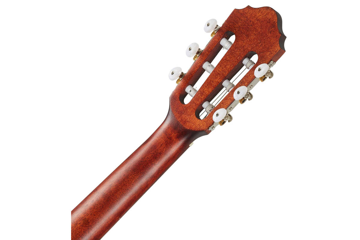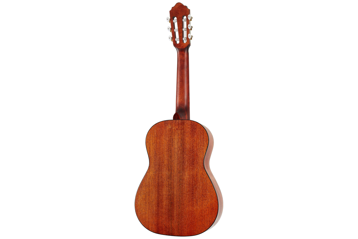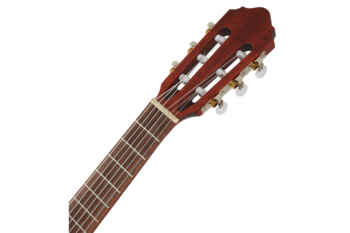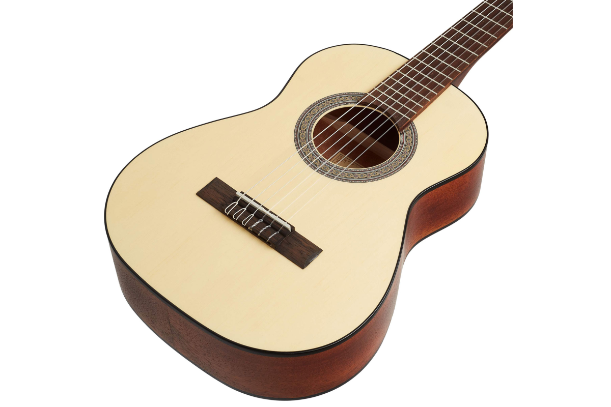 С длиной 1/2 мензуры эта гитара идеально подходит в качестве первого инструмента для юного ученика. Также эту компактную классическую гитару удобно брать с собой в поездке.