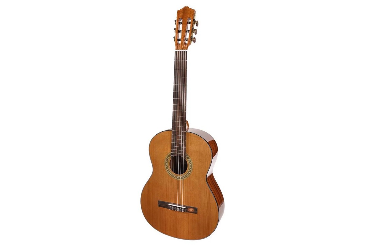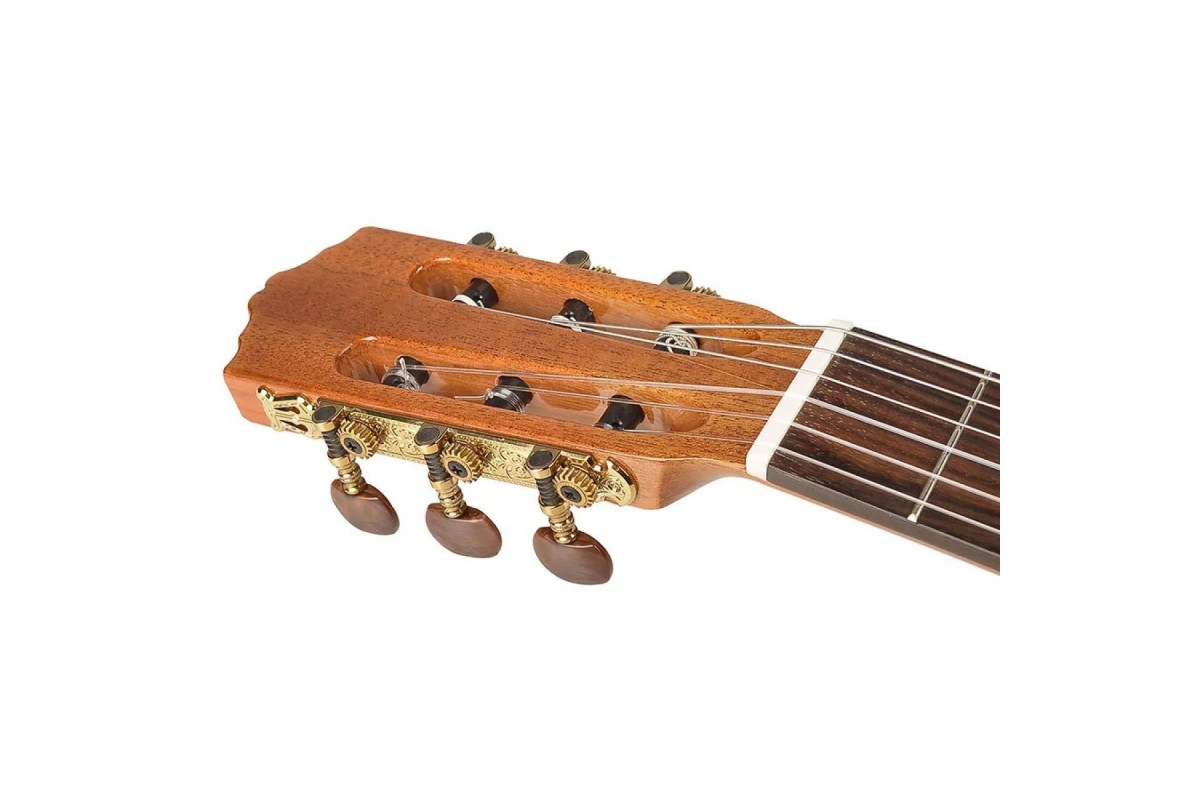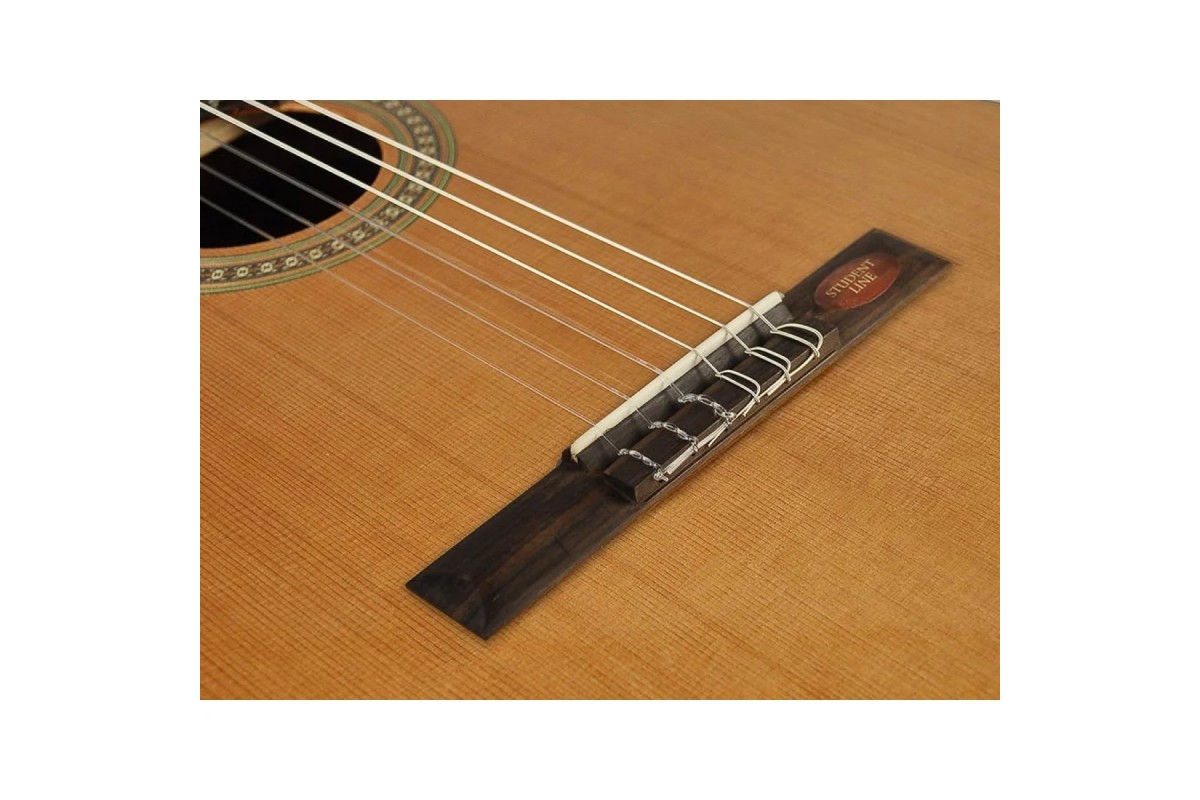 Данная гитара относится к категории классических гитар с нейлоновыми струнами, на которых легче играть начинающим гитаристам, чем на стальных струнах, например, вестерн гитар. Уже с завода установлены качественные нейлоновые струны Savarez 500 AJ (изготавливаемые во Франции), обеспечивающие фантастический, яркий тон и исключительную чистоту звучания.