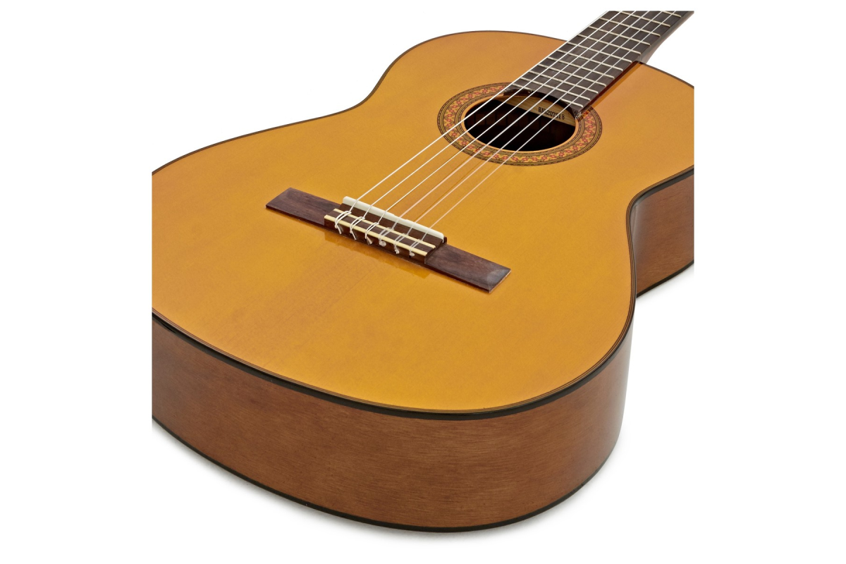 Верх гитары YAMAHA C70 изготовлен из ели, задней противни и обечайки из меранти, накладка на грифе и бридж из палисандра гарантируют, что эта гитара отличается качеством тембров и удобствами игры, которые противоречат ценовым признакам. Гитара YAMAHA C70 имеет позолоченные колышки.