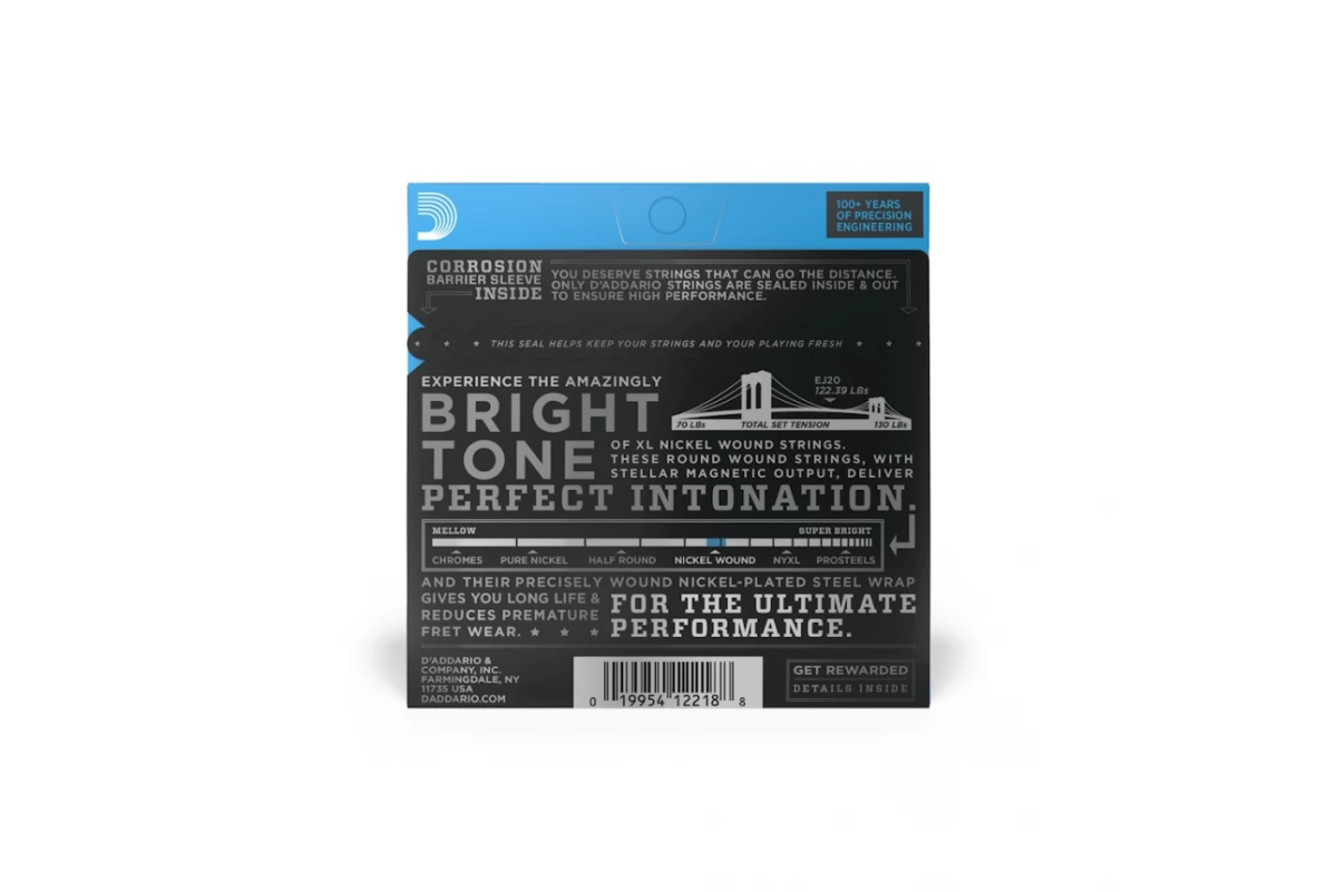 Струны D'Addario XL изготовлены из никелированной стали, известной своим выдающимся ярким звучанием и великолепной интонацией.