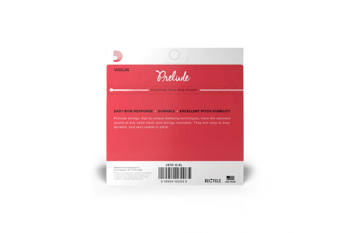 Струны Prelude имеют самый теплый звук в доступной конструкции струн с крепким стальным сердечником. Нечувствительны к перепадам температуры и влажности, они хорошо реагируют на смычок. Подходят для всех типов скрипок, включая модели с магнитными и пьезозвукосъемниками.