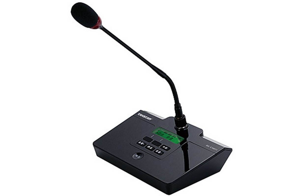 Микрофон делегата TAKSTAR DG-100T2 – оборудованный ЖК-дисплеем, показывающим рабочее состояние питания от аккумулятора. При активации запроса делегата отображает номер делегата на ЖК-дисплее с возможностью дать слово или отклонить запрос.