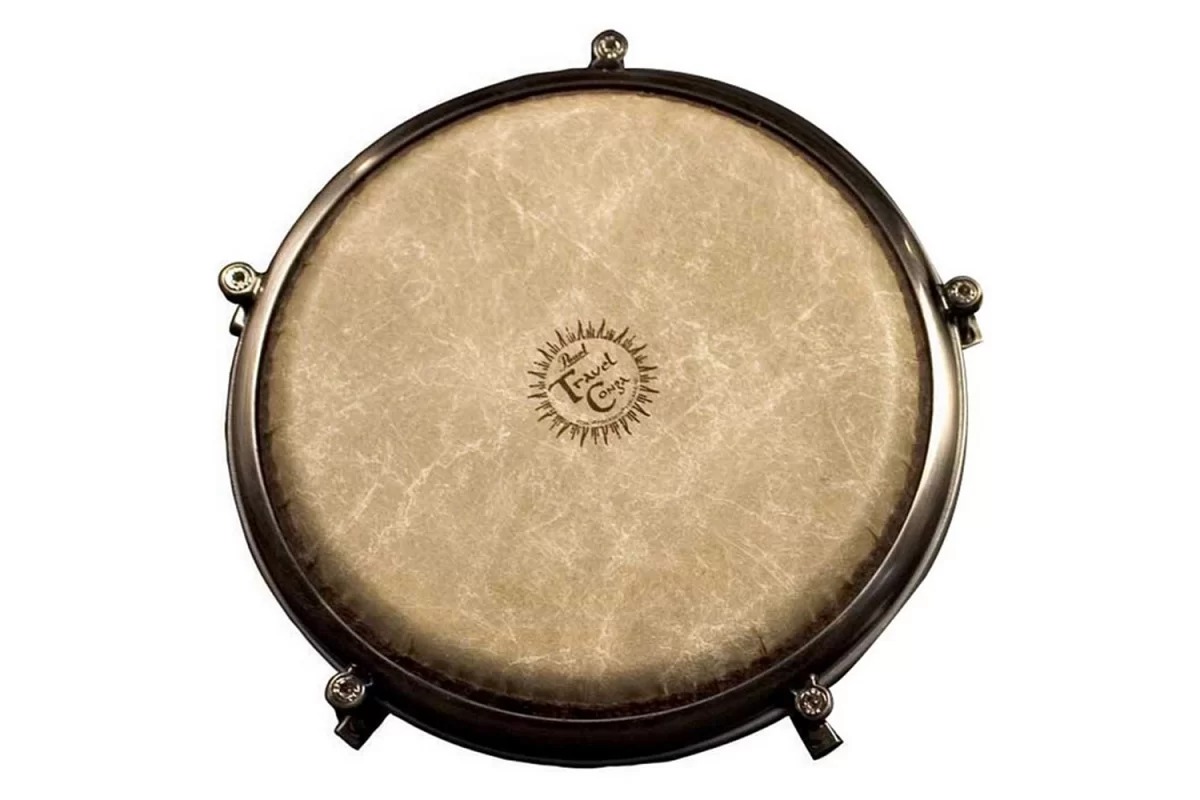 Корпус конго PEARL PTC-1100 серии Тревел выполнен из натурального тайского дуба, а все металлические элементы изготовлены из полированной стали. Это делает инструмент надежным и долговечным. Его конструкция практически ничем не отличается от полноразмерных аналогов. Исключение составляют только размеры: 11 дюймов в диаметре и 3,5 дюйма толщиной.