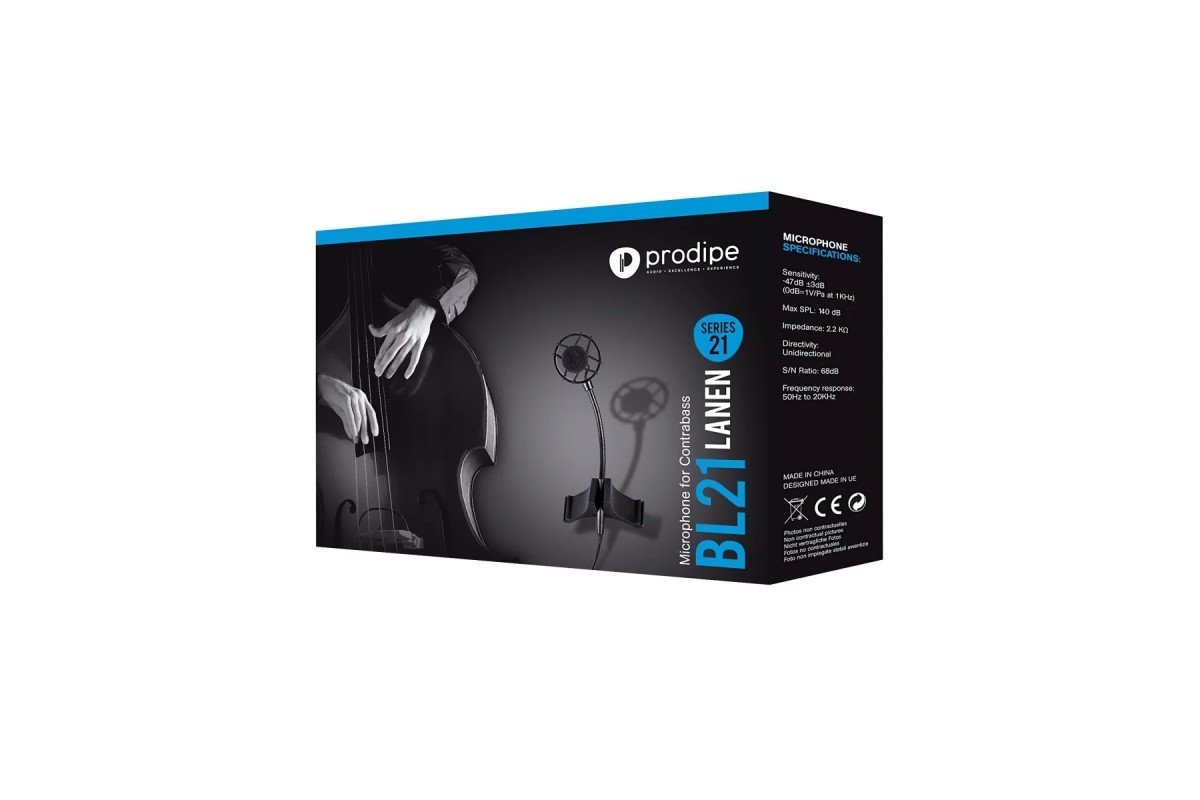 Prodipe BL21 – совершенно новая серия инструментальных микрофонов, предназначенных для записи акустических инструментов. Prodipe усовершенствовали электретную капсюлю таким образом, чтобы он был способен работать при уровне звукового давления вплоть до 140 дБ. На этом уровне капсюль полностью сохраняет все богатство гармоник и теплоту Вашего инструмента. BL21 Lanen Double Bass был создан специально для использования с контрабасом. Контрабасы бывают разных размеров, поэтому необходим регулируемый держатель. Prodipe разработали систему крепления, обладающую достаточной гибкостью, чтобы обеспечить простую и надежную фиксацию микрофона. Гибкая гусиная шея микрофона позволяет поместить его в самом эпицентре звука. Держатель также обеспечивает превосходную защиту от вибрации, таким образом исключая риск появления вмятин или царапин.