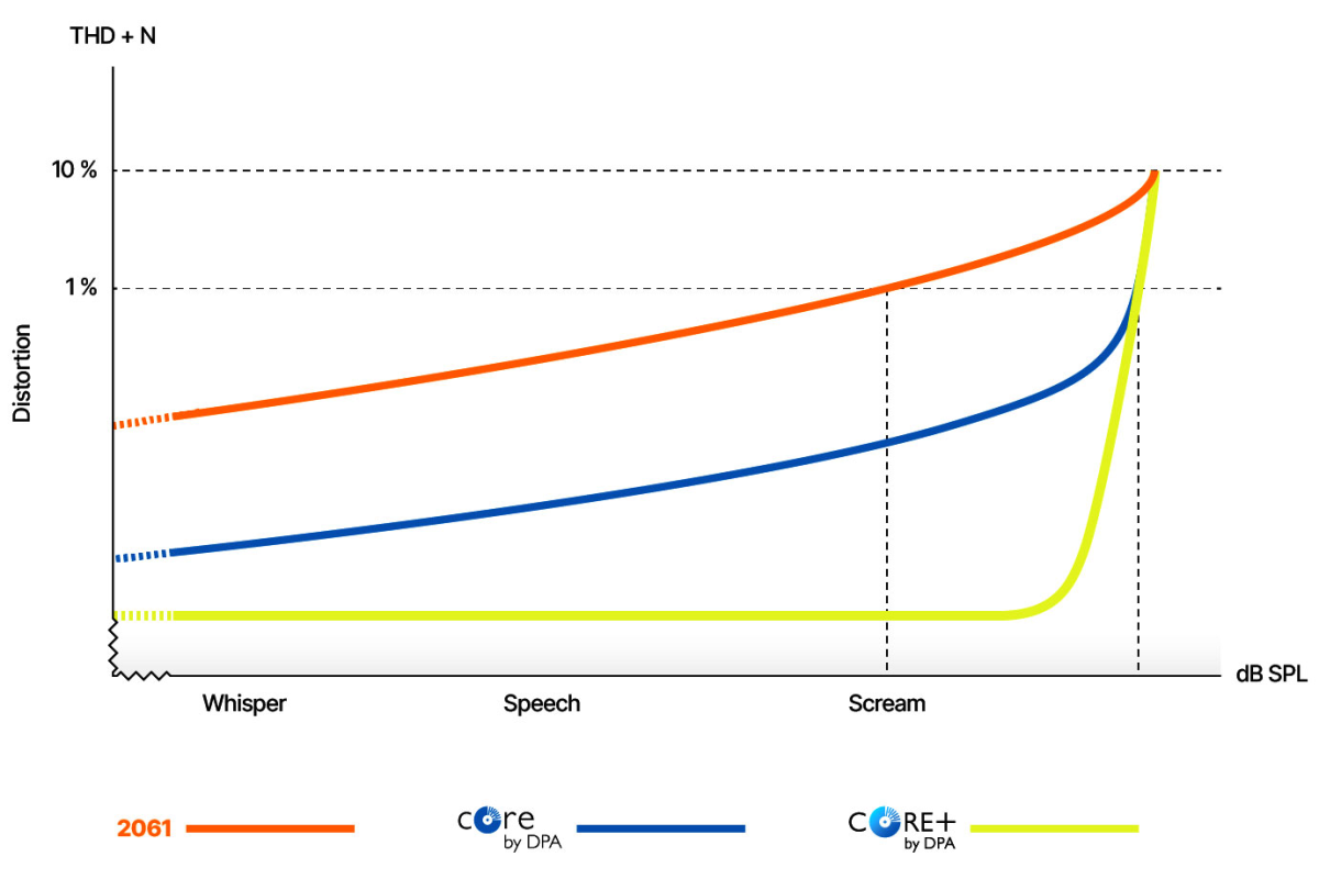 Петличный микрофон DPA 6061 CORE – профессиональный субминиатюрный всенаправленный микрофон для сцены, студии, телевидения и кино. Благодаря технологии CORE by DPA обеспечивает чистый звук с минимальными искажениями, даже при высоком уровне звукового давления. Модель оснащена кабелем длиной 1,8 м , черным корпусом и разъемом MicroLock (совместимым с MicroDot) . Имеет динамический диапазон 102 дБ , максимальный уровень звукового давления до 144 дБ SPL peak работает с фантомным питанием 5–10 В (с адаптером DAD6001-BC – от 12 В). Идеальное решение для актеров, ведущих и музыкальных выступлений, когда требуется незаметность и высокое качество звучания.