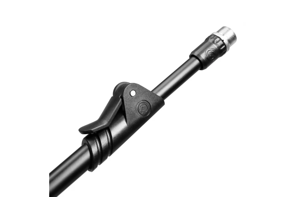 MS 4322 В – это микрофонная стойка премиум-класса, которая отличается прочной конструкцией, порошковым покрытием и максимальной высотой 169 см. Чрезвычайно устойчивое основание оснащено литым под давлением цинком раструбом и просторными, прецизионно складывающимися стальными ножками с прочными резиновыми поверхностями. Ступица стрелы имеет прецизионную двухточечную регулировку наклона и положение телескопической стрелы. Быстросъемный регулятор позволяет изменять удлинение до максимальной длины 88 см, облегчая гибкое расположение микрофона.