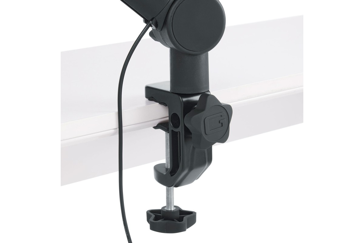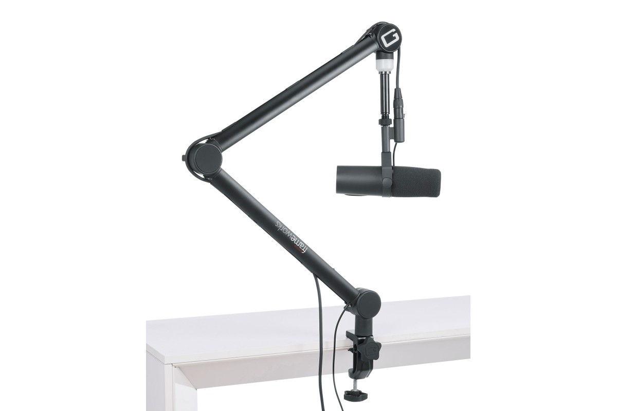 Профессиональная настольная подставка для микрофона для вещания/подкастов от Gator Frameworks позволяет записывать вокальные записи без лишних хлопот. GFWMICBCBM4000 является продолжением своих проверенных предшественников с добавлением светодиодного светового кольца, чтобы информировать оператора о живом микрофоне, а также с включением полностью съемного кабеля XLR 10'/3048 мм и выделенного канала для укладки кабелей. Выбирайте между тремя разными цветовыми режимами (красный, синий или фиолетовый) и контролируйте яркость с помощью светодиодного контроллера. Стойка полностью регулируется в соответствии с желаемым положением микрофона и может быть закреплена или установлена непосредственно на поверхности толщиной до 2,17 дюйма/55 мм, включая возможность поворота на 360 градусов. Чтобы уменьшить вероятность шумных прерываний при записи, чувствительной к звуку, подставка спроектирована специально для создания минимального звука во время перемещения.