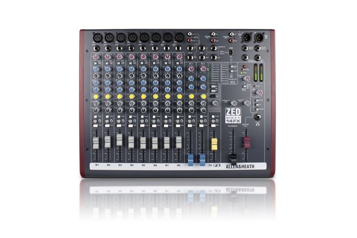 ZED60-14FX компактный и ультра портативный микшер для живого и студийного использования для артистов соло и маленьких групп. Этот микшер – мечта гитаристов. Два из 8 моноканалов имеют высоко импедансные входы (джек), которые принимают нормальный и низкий линейный уровень от гитарных звукоснимателей и поэтому гитаристы могут непосредственно подключать гитару в микшер без необходимости в ди-боксах. Эти входы были разработаны с целью воспроизведения звука классических ламповых усилителей для невероятной четкости и теплоты. Два стерео входа позволяют подключать MP3/CD и клавиатуры. ZED60-14FX оборудован USB аудио входом/выходом, предоставляя легкую возможность стерео записи на концертах и в студии. Кроме того, здесь есть профессиональные XLR стерео выходы, гибкая секция мониторинга с выходами для наушников и спикеров и 16 потрясающих FX. Но самое важное из всего, ZED60-14FX создан в соответствии со стандартами качества, что делает Allen & Heath одним из наиболее доверяемых имен в профессиональной аудио индустрии вот уже более 40 лет.