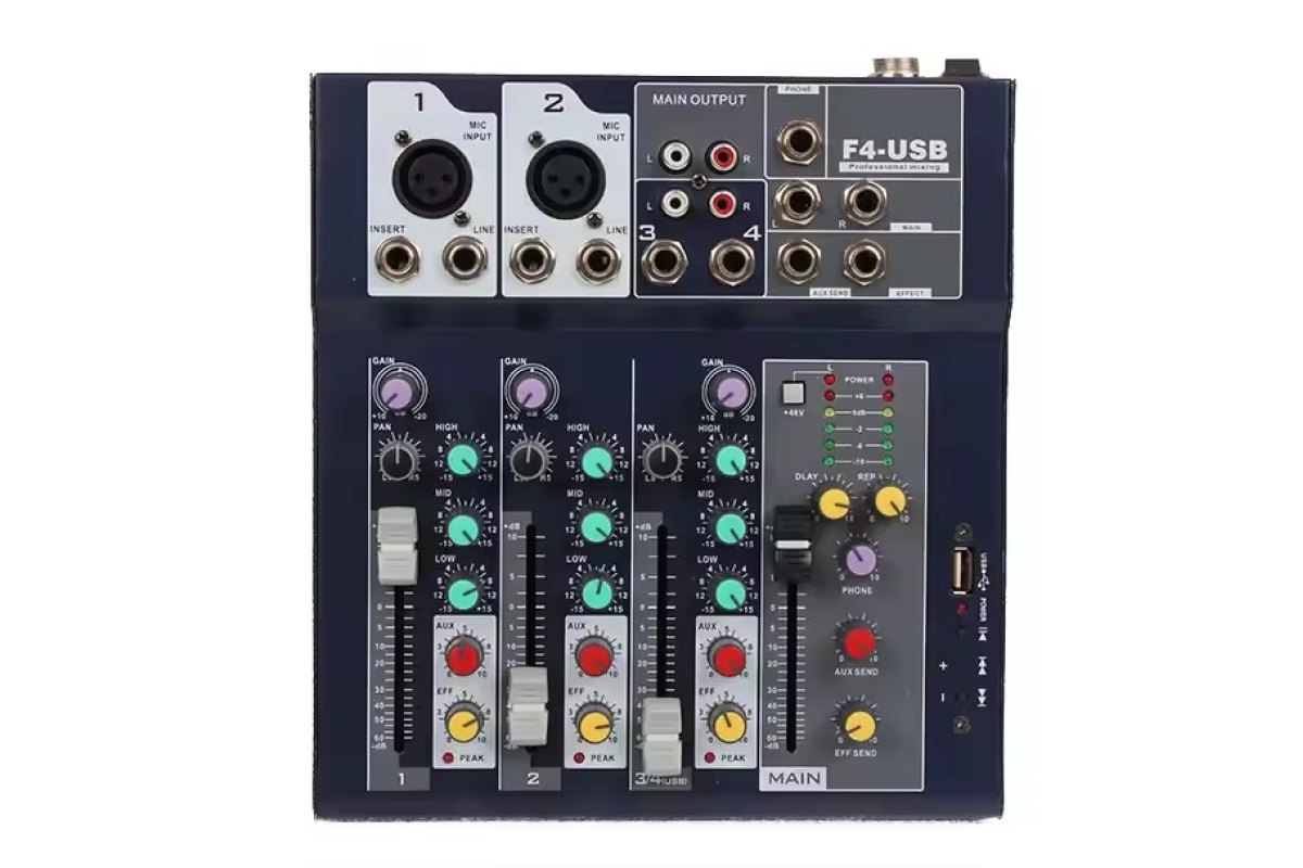 4-канальный микшерный пульт – это профессиональное компактное решение для обработки аудиосигналов, идеально подходящее для студийной записи, живых выступлений и мультимедийных приложений. Пульт оснащен фантомным питанием +48 В с индивидуальным выключателем по каждому каналу, что обеспечивает совместимость с конденсаторными микрофонами. Трехполосный эквалайзер на каждом канале позволяет точно настраивать звук, а широкий частотный диапазон (20 Гц – 20 кГц, ±0.5 дБ) и высокое отношение сигнал/шум (-80 дБ) гарантируют чистое и качественное звучание. Пульт поддерживает микрофонные (до 16 дБу), линейные (до 30 дБн) и стереовыходы (до 20 дБн), а также выход для наушников с импедансом 200 Ом/300 мОм. Низкое энергопотребление (13 Вт) и компактные размеры делают устройство удобным для транспортировки и использования в разных условиях.