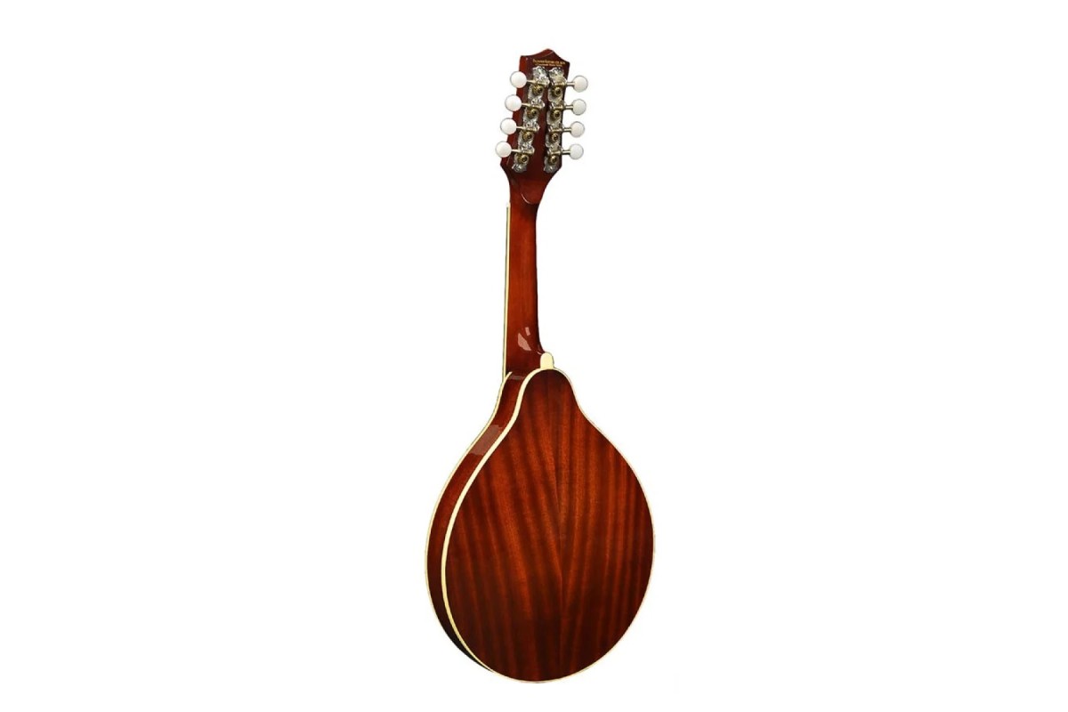 Мандолина имеет классический дизайн с верхней декой из ламинированной ели, что позволяет инструменту иметь отличный отклик и отличную проекцию звука. Корпус изготовлен из ламинированного сапеля, что придает ему дополнительную прочность и стабильность. Гриф из красного индонезийского дерева и накладка из технического дерева обеспечивают удобство игры и надежность инструмента.