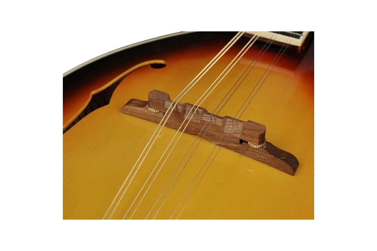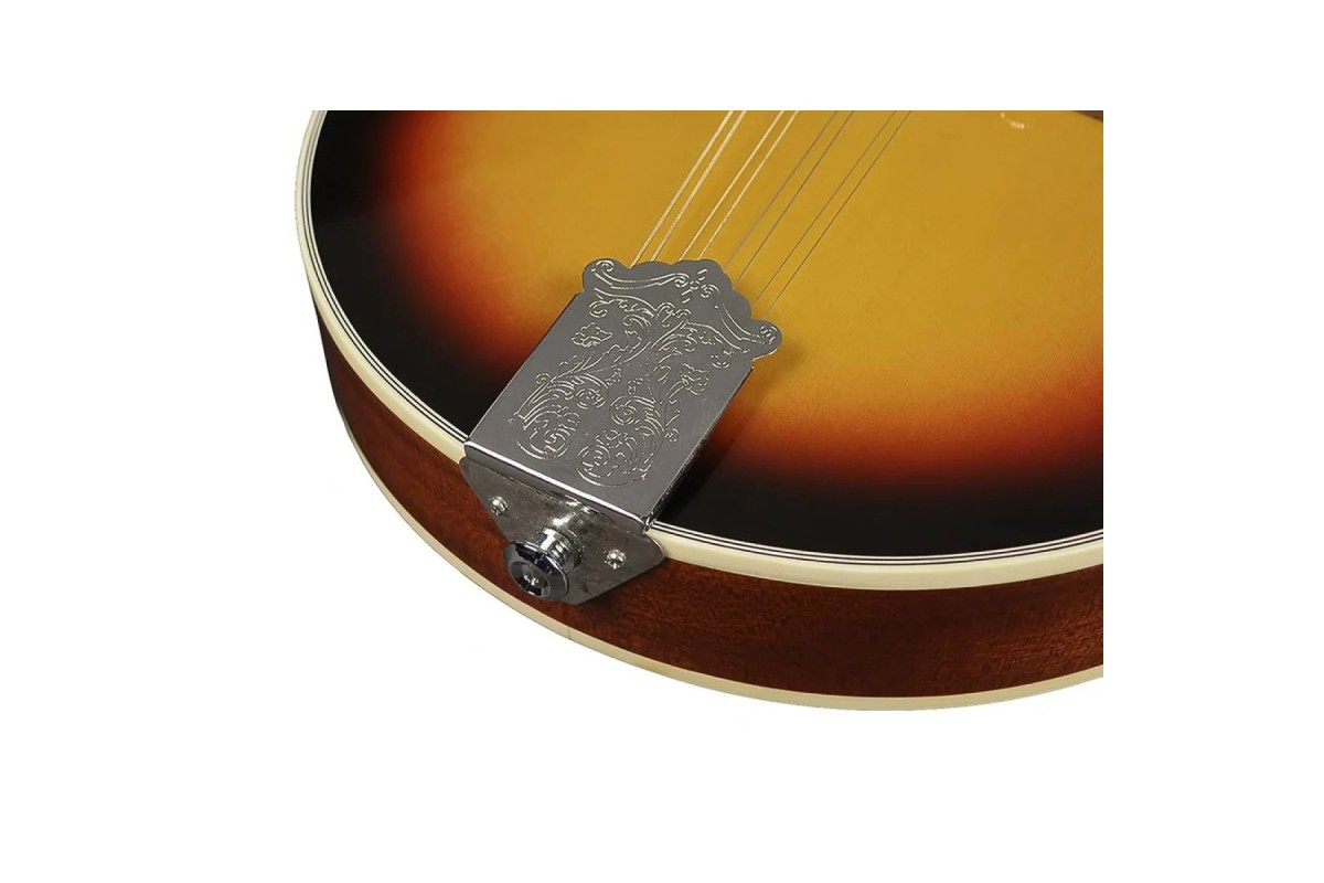 Винтажное оформление в виде солнечных лучей (vintage sunburst) верхней деки придает мандолине элегантный вид, а глянцевое покрытие корпуса и грифа делает инструмент еще более привлекательным. Корпус мандолины содержит отверстия в форме "f", что является характерной чертой этого инструмента.