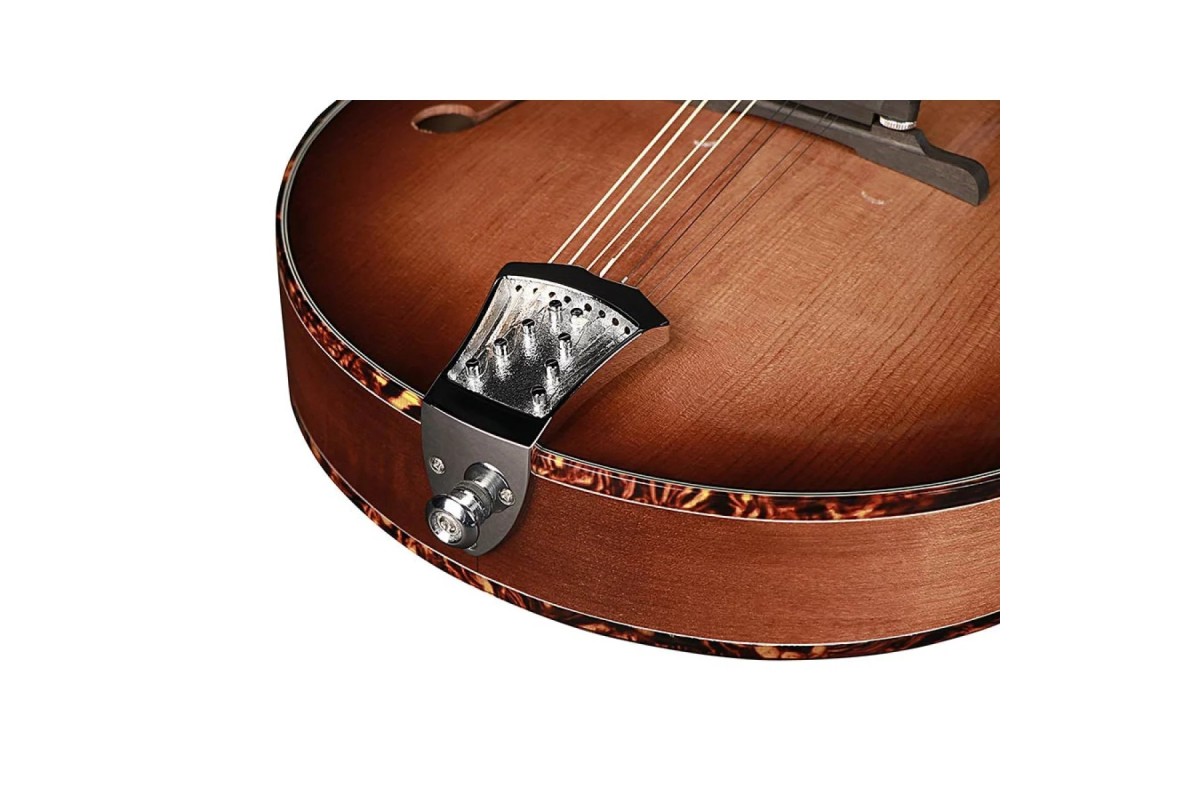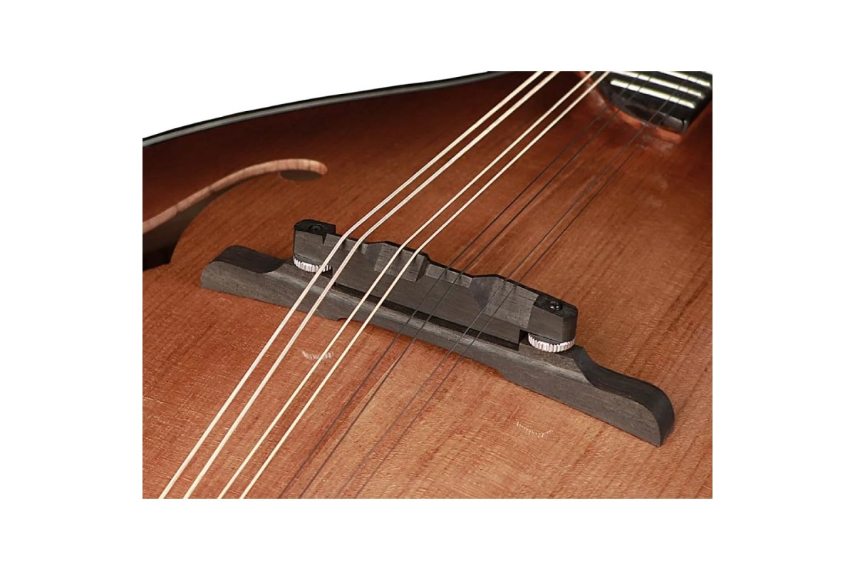 Мандолина имеет мензуру длиной 350 мм, а ширина верхнего порожка составляет 31,5 мм. Порожки изготовлены из кости, что придает звуку яркость и четкость. Благодаря активному двустороннему анкеру, изгиб грифа можно настраивать.