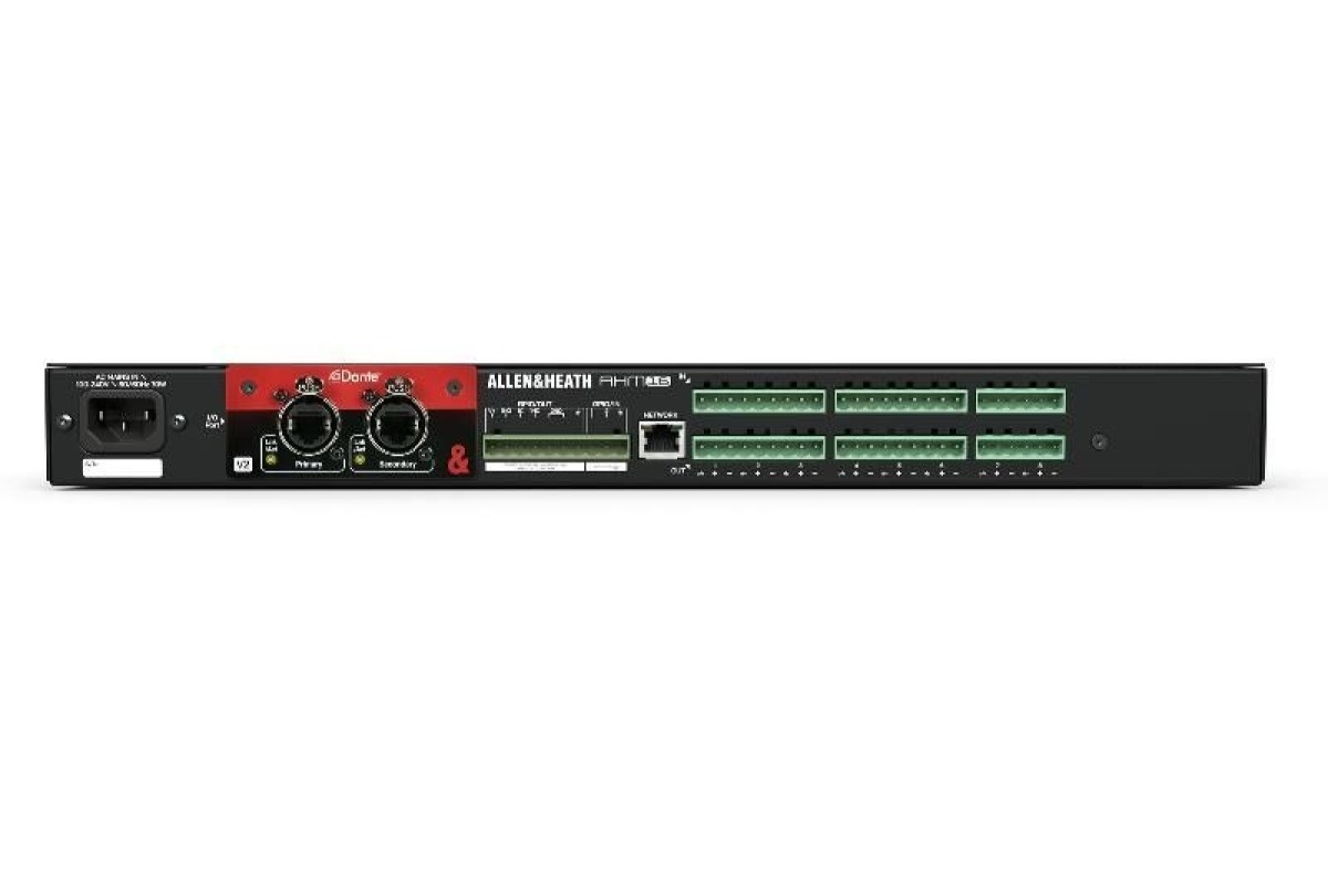 Allen & Heath AHM-16 – цифровой матричный аудиопроцессор. Процессор совместим с экосистемой Allen&Heath, включающей устройства для расширения конфигурации входов/выходов, опции управления и решения Dante. Модель создана на базе матричного аудиопроцессора Allen&Heath AHM-64. Это надежное основание для широкого спектра установочных решений от единичного конференц-зала до целого кампуса. Модель обеспечивает пользователям простоту программирования и управления, а также возможность расширения конфигурации входов/выходов и использования сетевых стандартов передачи аудио. AHM-16 обеспечивает обработку 16х16 каналов и имеет 8 аналоговых входов и выходов. Он подходит для инсталляций в одном помещении и многозонных установок малого формата, например, для баров, ресторанов, школьных залов. Процессор имеет порт 96 кГц для расширения модулей. Он позволяет установить карту 64x64 Dante для интеграции процессора в сеть Dante и подключение к нему поддерживающих Dante устройств расширения входов/выходов Allen & Heath. Также в этом порте можно установить карту SLink для plug-and-play подключения устройств экосистемы Allen & Heath Everything I/O. Модель поддерживает удаленное управление, в том числе с помощью контроллеров PoE и мобильной программы Custom Control. Процессор предлагает богатый набор инструментов обработки, включая автоматический микрофонный микшер, компенсацию окружающего шума, приоритетный дакер и 8-полосный эквалайзер на каждом входе и зонном выходе, а также обработку для акустических систем.