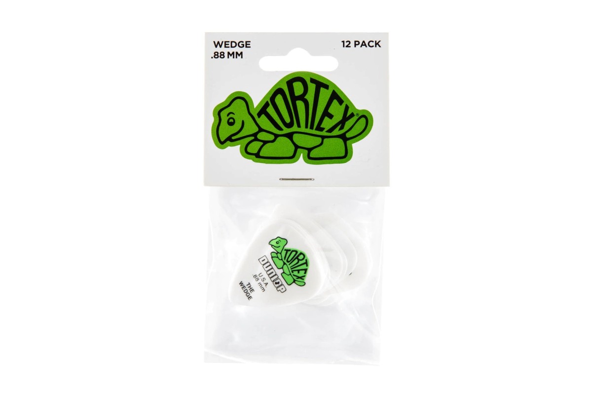 Медиаторы Tortex Wedge помимо белого цвета характеризуются большей площадью хвата и заостренным наконечником.