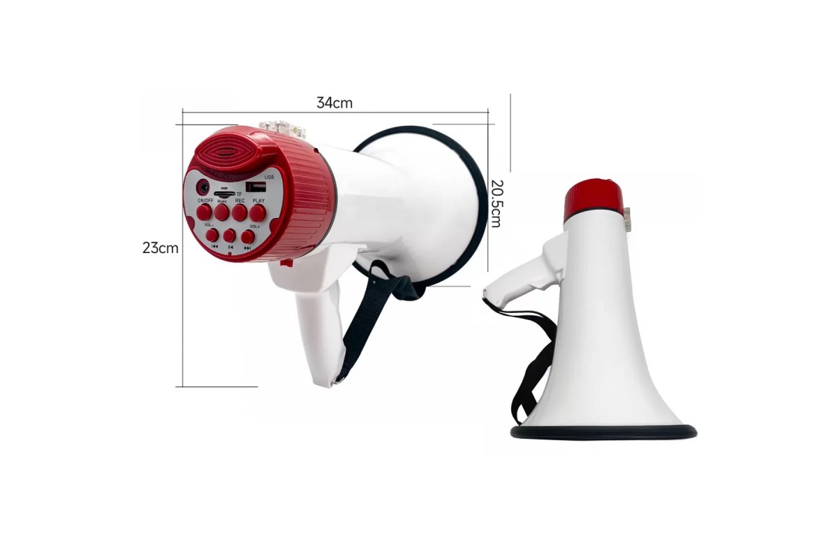 BIG MEGAREX – это мощный рупорный мегафон , созданный для эффективного озвучивания на открытых просторах, во время мероприятий и в экстренных ситуациях. Модель оснащена USB, Bluetooth, записью коротких сообщений и сигналом тревоги и выносным микрофоном для удобного использования на расстоянии.