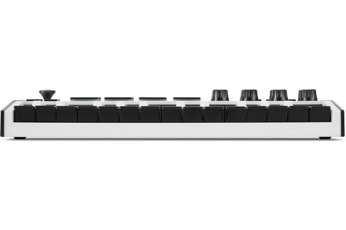 MIDI клавиатура, портативная, 25 клавиш чувствительных к силе нажатия, 4 программы, арпеджиатор, управление: 8 педов, 8 регуляторов, 4-позиционный джойстик, питание USB (кабель в комплекте), ПО, цвет – белый.