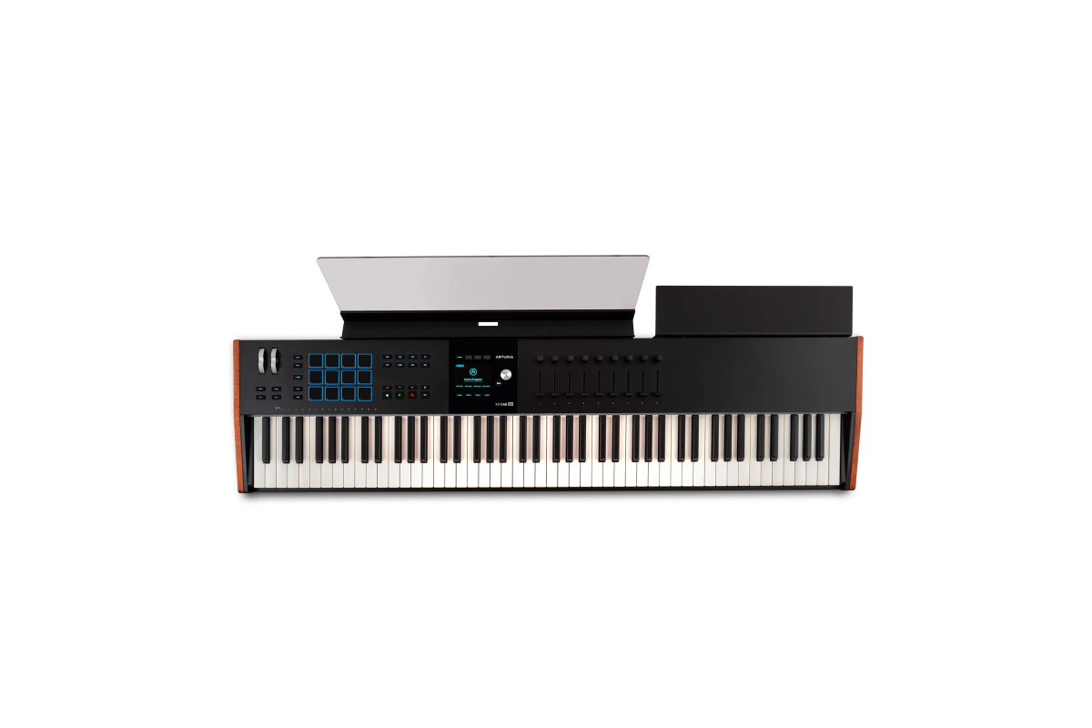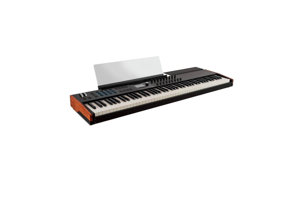 Arturia KeyLab 88 Mk3 (Black) — профессиональная MIDI-клавиатура для музыкантов и продюсеров, объединяющая 88 клавиш с молоточной механикой Fatar TP/110 , полную интеграцию с DAW и программным пакетом V Collection X. Компактный, но мощный контроллер обеспечивает интуитивное управление, 9 чувствительных к прикосновению потенциометров и фейдеров, 12 педов с чувствительностью к силе нажатия и давления (4 банка), а также 33 кнопки и 10 крутилок для полного контроля над звуком.