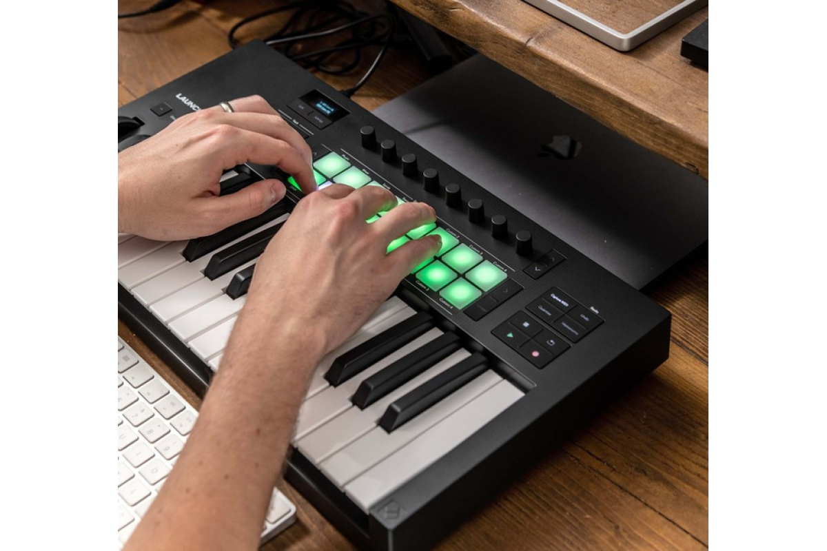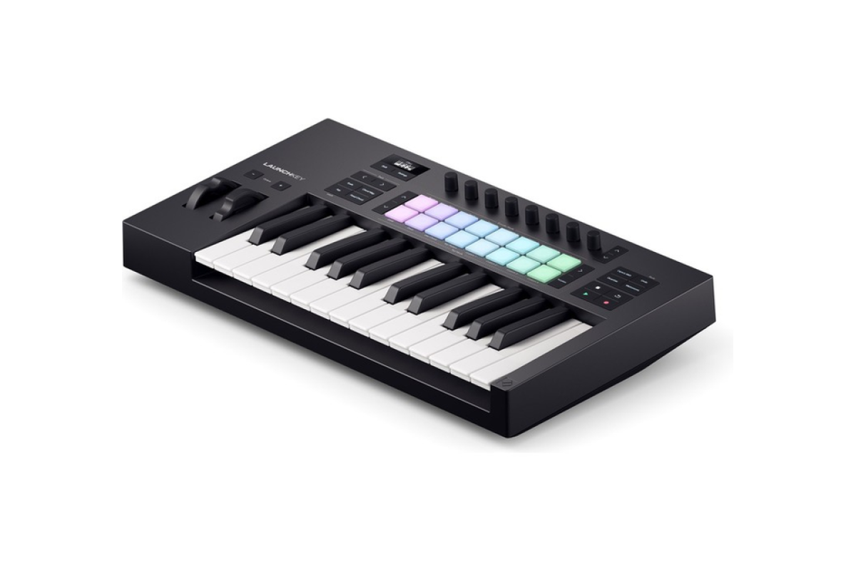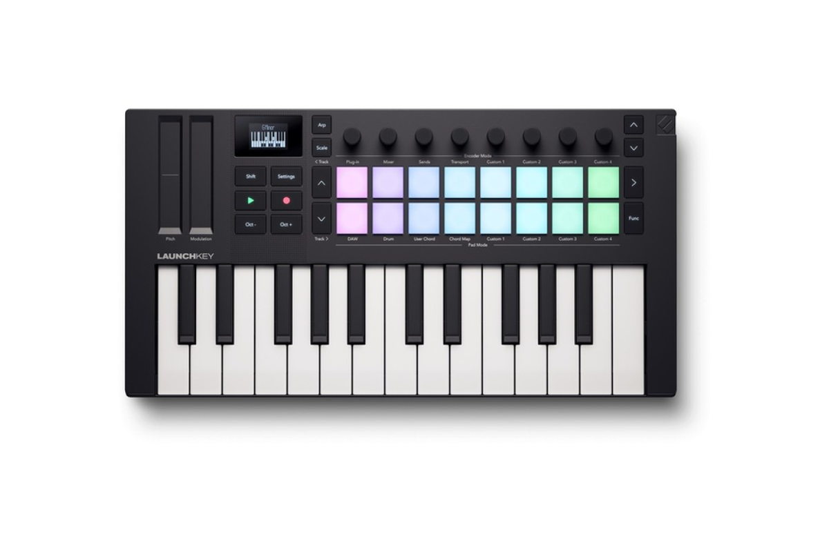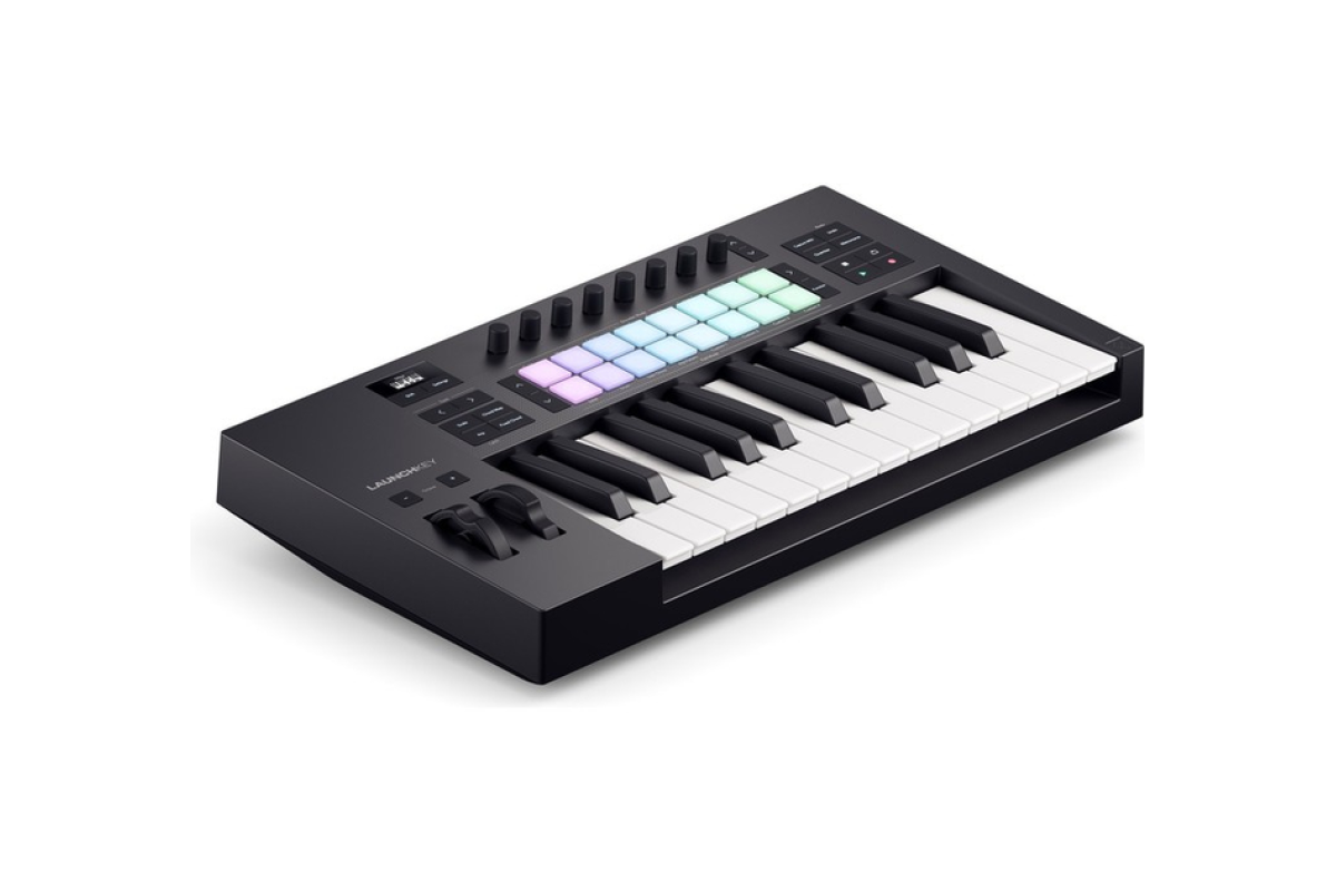 Launchkey Mini 25 – компактный и мощный DAW-контроллер, оснащенный набором встроенных инструментов для творчества. Каждая деталь продумана для повышения вашего креативного потока: от синтезаторной мини-клавиатуры и 16 педов с полифоническим афтертачем до панели управления, что обеспечивает интуитивную интеграцию с DAW.