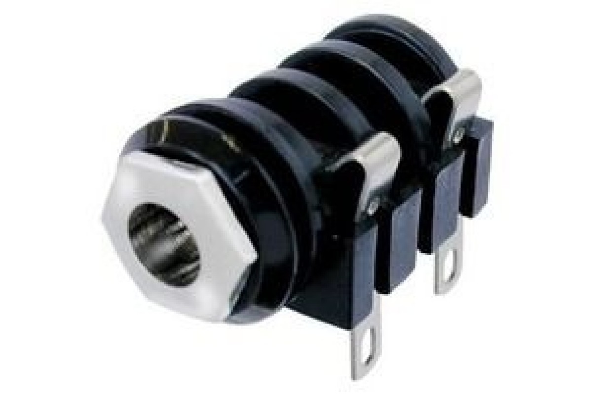 Neutrik NMJ4HC-S – это джековое гнездо 1/4 моно, горизонтальная установка на плату, хромированный наконечник