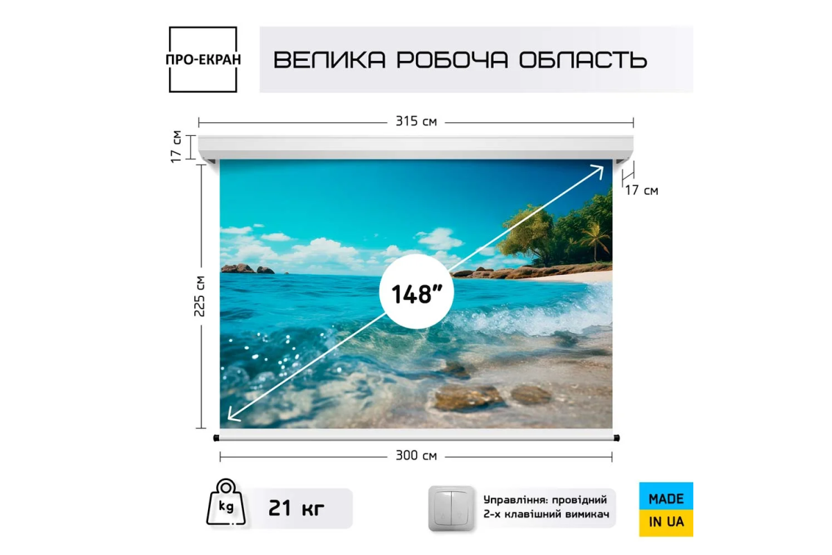 Моторизованный экран для проектора с диагональю 148 дюймов, 300х225 см (4:3).