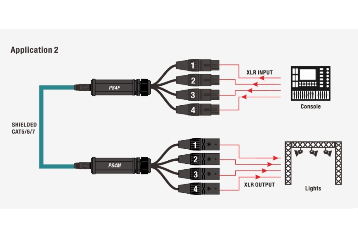 Используется для подключения одного экранированного кабеля CAT5, 5E, 6, 6A или 7 для передачи и приема сигналов от нескольких пультов управления освещением, микрофонов, музыкальных инструментов, колонок и других аудиоустройств. Обеспечивает компактную и удобную передачу многоканальных цифровых сигналов или аналоговых сбалансированных сигналов.