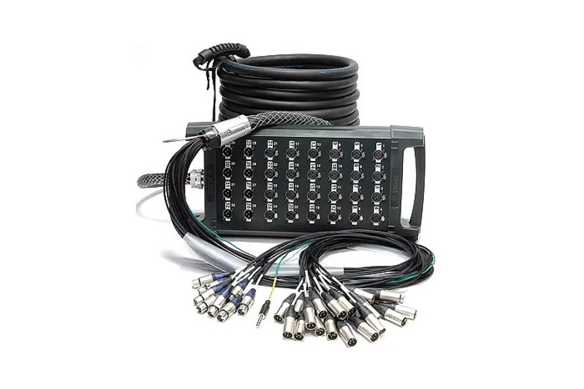 Вторая сторона мультикора заканчивается развернутой многоканальной кабельной группой (косой) с разъемами XLR 3 (Neutrik), промаркированными по-канально. Коса имеет удобную металлическую корзину для подвеса мультикора в местах подключения, что ощутимо снижает нагрузку на разъемы. Кабель каждого канала защищен кабельным оплетком.