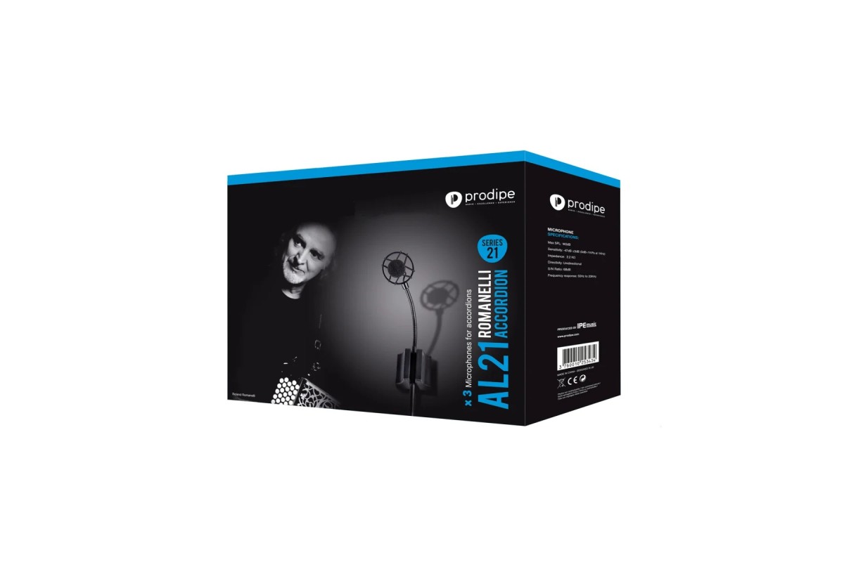 Набор инструментальных микрофонов Prodipe AL21 - Абсолютно новая линейка инструментальных микрофонных систем, предназначенных для записи всех ваших акустических инструментов вживую. Микрофон AL21 Romanelli Accordion оптимизирован для подачи звука аккордеона в акустические системы. Воспроизвести звук аккордеона далеко не просто. Я в полной мере участвую в разработке этого нового микрофонного набора от Prodipe, а вы хорошо знаете, как мне сложно угодить, когда речь идет о том, чтобы добиться идеального звучания. Я, мой друг Людовик Ланен и вся команда Prodipe сделала все возможное в поисках способа воспроизведения звука аккордеона.