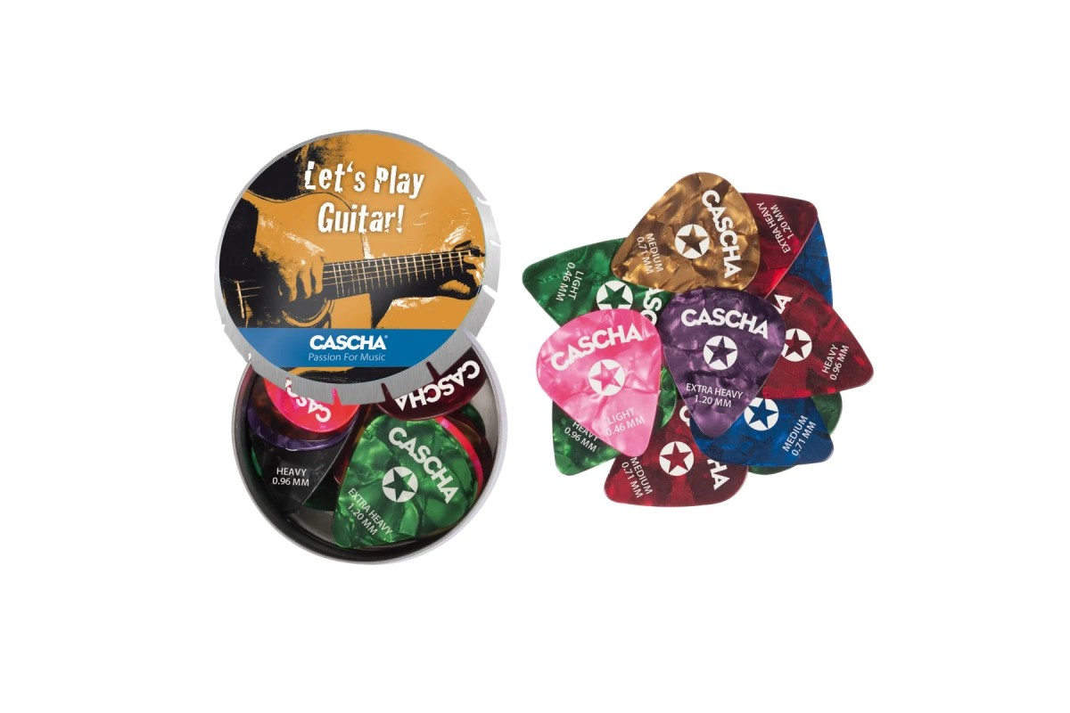 Набор медиаторов Cascha Box HH 2293 включает 24 медиатора разных толщин, изготовленных из особо устойчивого к износу целлулоида. Медиаторы имеют четыре толщины: 0,46 мм, 0,71 мм, 0,96 мм и 1,20 мм. Это позволяет использовать набор для любого стиля игры и техники. Цвета медиаторов подобраны случайным образом из широкого ассортимента, придающего набору яркости и разнообразия. Медиаторы поставляются в удобной металлической коробке для хранения.