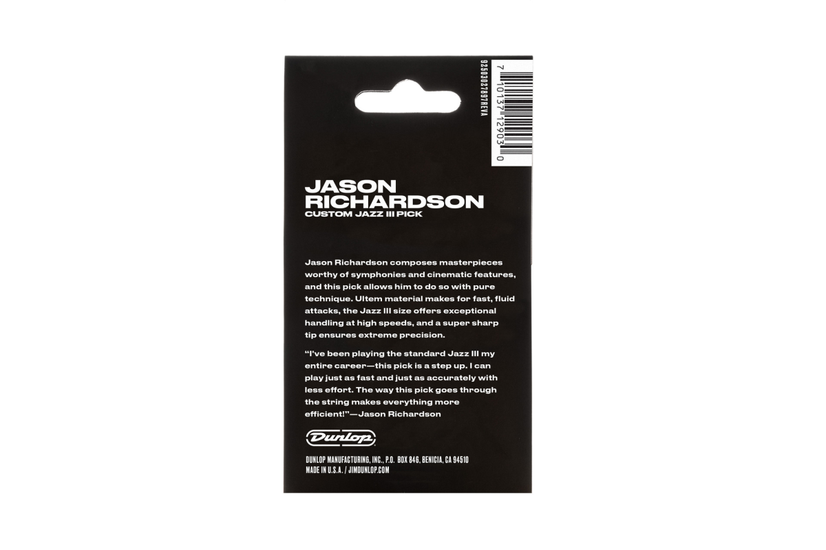 «Всю свою карьеру я играл на стандартном Jazz III – этот медиатор – шаг вперед. Я могу играть так же быстро и точно с меньшими усилиями. То, как этот медиатор проходит через струну, делает все более эффективным! – Джейсон Ричардсон.