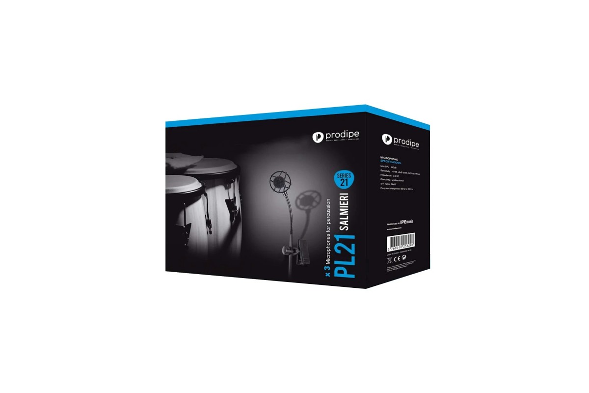 Набор инструментальных микрофонов Prodipe PL21 – PL21 Salmi é, ri Percussions: комплект из трех микрофонов для большинства перкуссионных инструментов. Абсолютно новая серия инструментальных микрофонов, предназначенных для записи перкуссионных инструментов вживую. Усовершенствованный электретный капсюль способен работать при уровне звукового давления вплоть до 140дБ. На этом уровне капсюль полностью сохраняет все богатство гармоник и теплоту Вашего инструмента. В комплект входят зажим(ы) и XLR переходник (требуется фантомное питание 48В). Кроме того, микрофон можно использовать в качестве беспроводной, подключив к UHF Lanen Bodypack Sé, rie 21, специально адаптированной к сопротивлению микрофонного капсюля Lanen 21.
